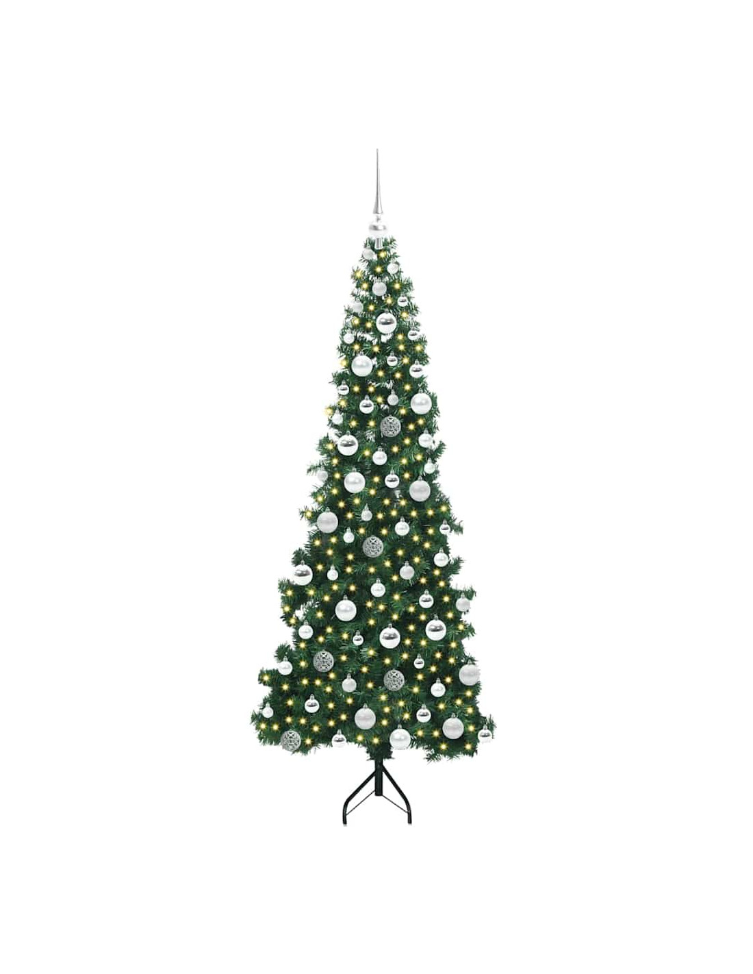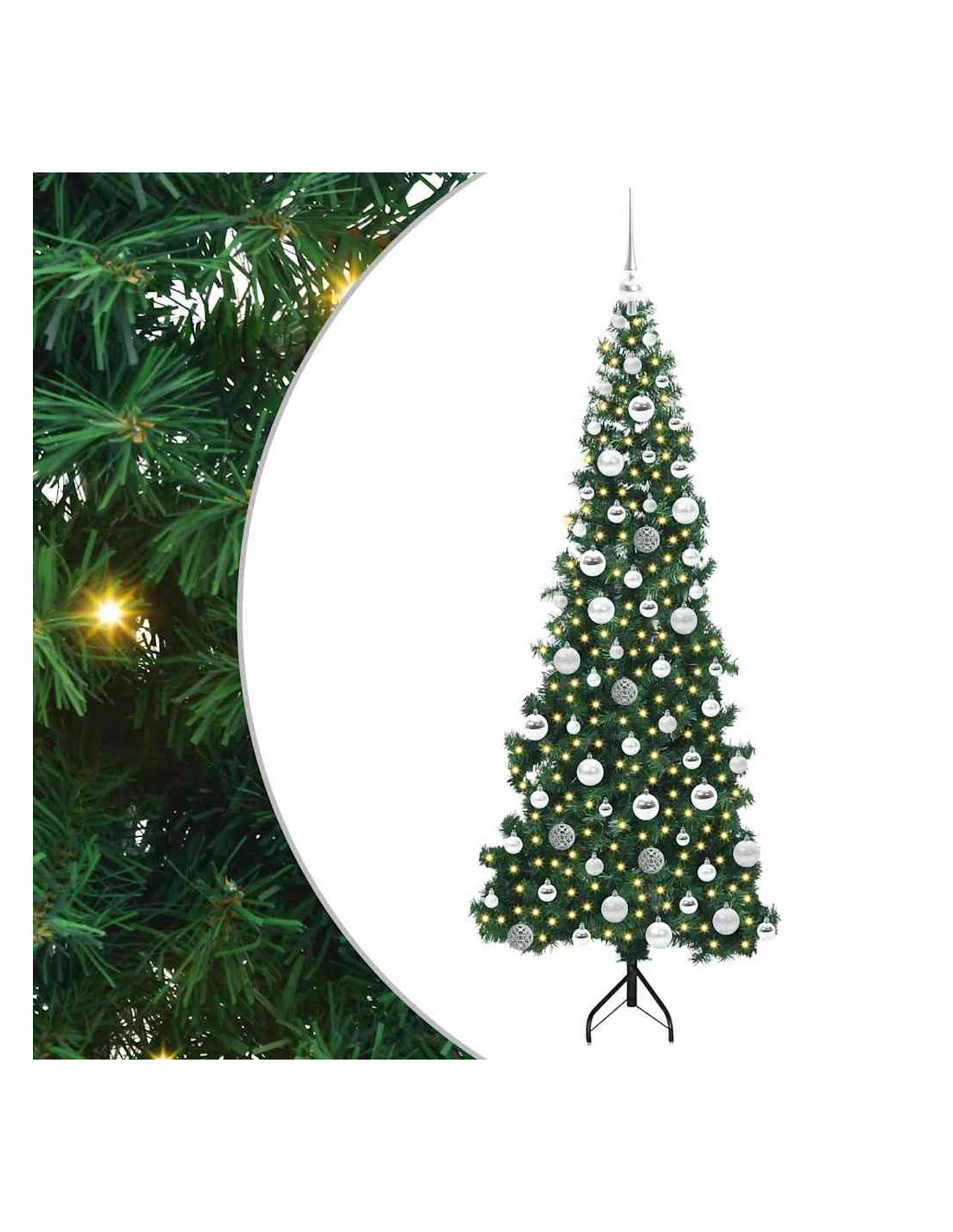Questo albero di Natale artificiale pre-illuminato mescola un design moderno con un'atmosfera festosa per una soluzione incredibile e salvaspazio per decorare a Natale. Perfetto per chi ama un look minimalista, si integra bene in spazi contemporanei grazie alle sue linee pulite. La forma a un quarto si adatta perfettamente agli angoli, rendendolo ideale per soggiorni piccoli o ripari esterni. Con i suoi rami verdi in PVC, questo albero ha un aspetto classico e luci LED bianche calde che creano un'atmosfera accogliente.