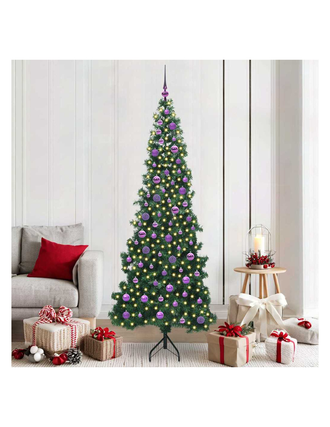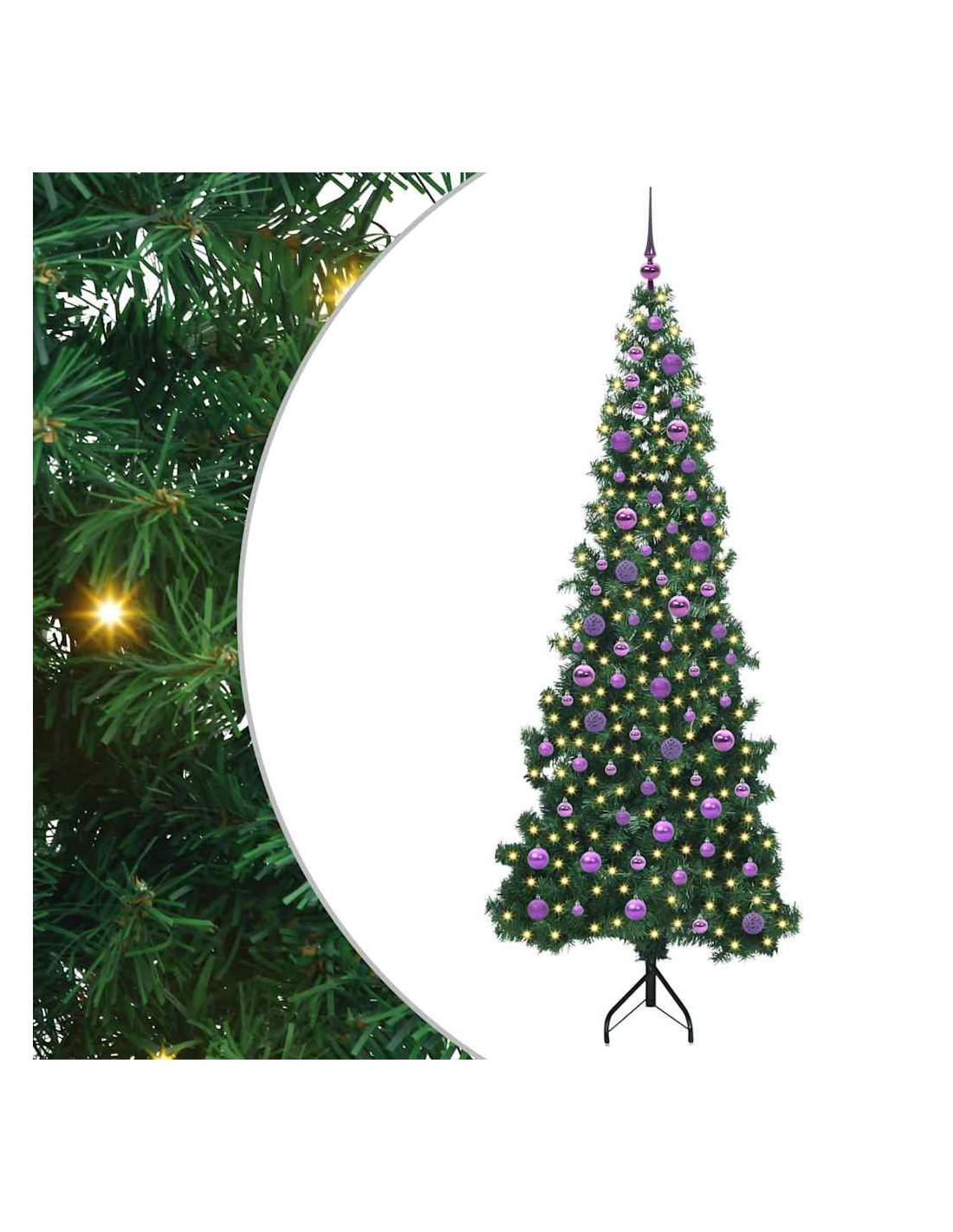 Questo albero di Natale artificiale pre-illuminato mescola un design moderno con un'atmosfera festosa per una soluzione incredibile e salvaspazio per decorare a Natale. Perfetto per chi ama un look minimalista, si integra bene in spazi contemporanei grazie alle sue linee pulite. La forma a un quarto si adatta perfettamente agli angoli, rendendolo ideale per soggiorni piccoli o ripari esterni. Con i suoi rami verdi in PVC, questo albero ha un aspetto classico e luci LED bianche calde che creano un'atmosfera accogliente.