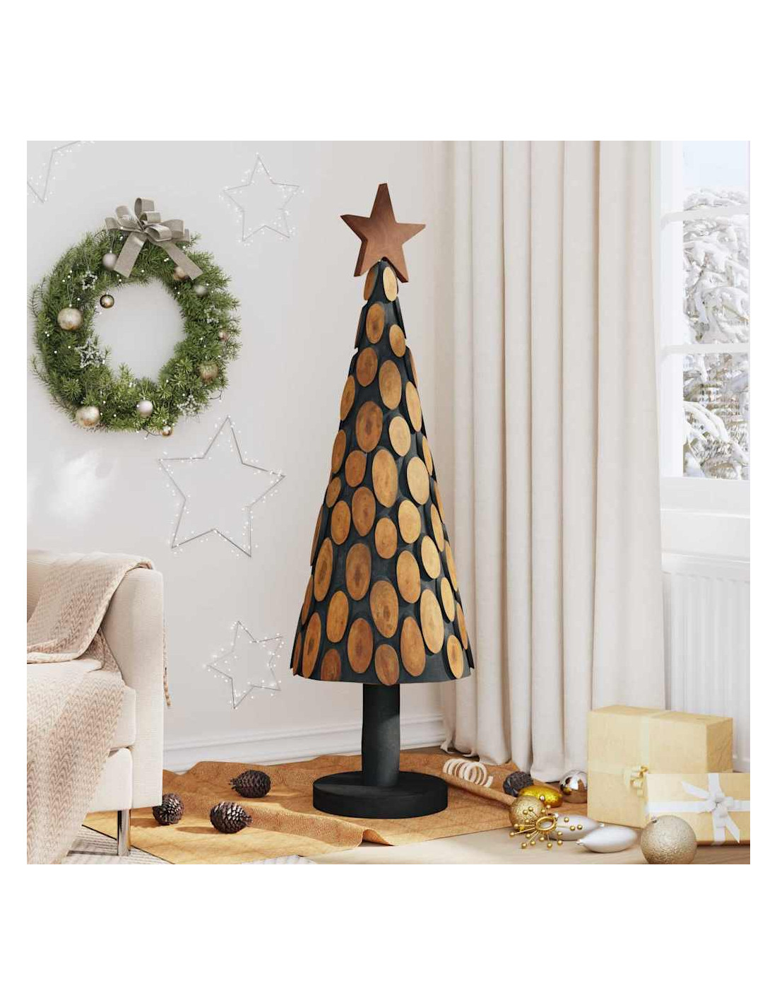 - Legno Massello di Teak: Questo albero è realizzato in legno massello di teak di alta qualità, conosciuto per la sua durata e il suo aspetto meraviglioso. La forza del legno e la resistenza all'usura ne fanno un pezzo stagionale durevole, mantenendo la sua bellezza per molte feste. Le tonalità calde e terrose si abbinano a vari stili decorativi, rendendolo un'aggiunta versatile a qualsiasi spazio.