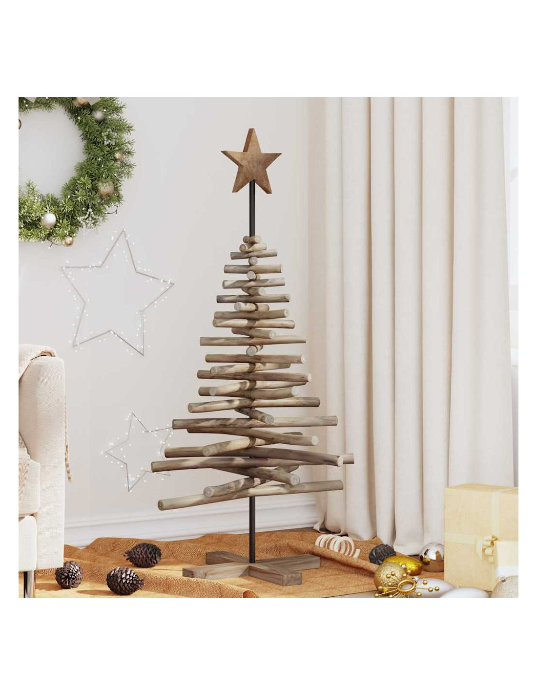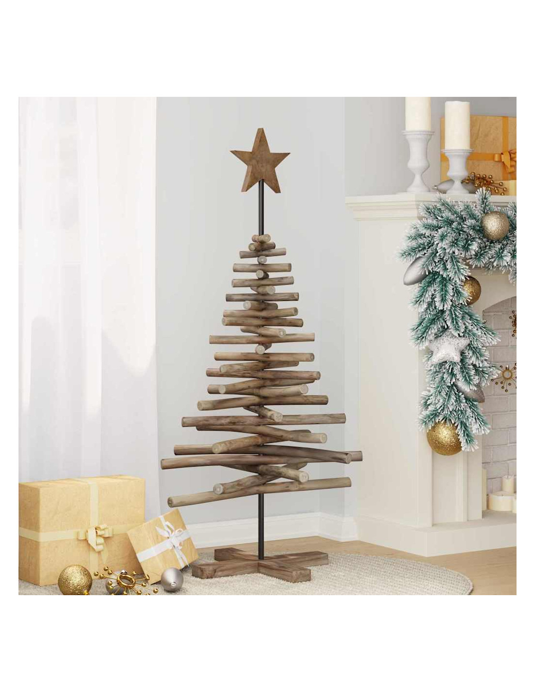 - Materiali Naturali: Fatto in legno massello di teak, questo albero di Natale ha un fascino senza tempo. Le calde tonalità marroni si abbinano perfettamente a decorazioni rustiche e tradizionali, creando un'atmosfera accogliente ovunque lo metti. Questo materiale naturale rende l'albero resistente e aggiunge un tocco autentico alla tua decorazione festiva.