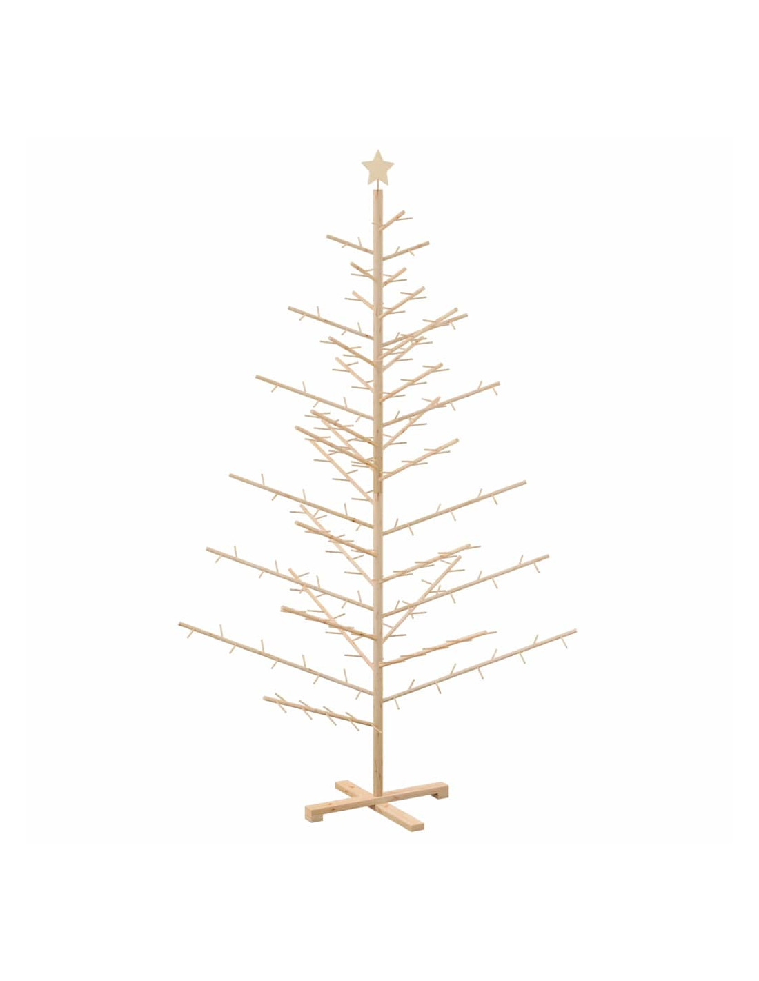 - Materiale in legno di pino massello Questo albero di Natale è fatto di legno di pino massello, il che significa che è robusto e porta un fascino naturale a qualsiasi decorazione natalizia. È progettato per durare nel tempo, diventando un pezzo che la famiglia aspetta per le feste.