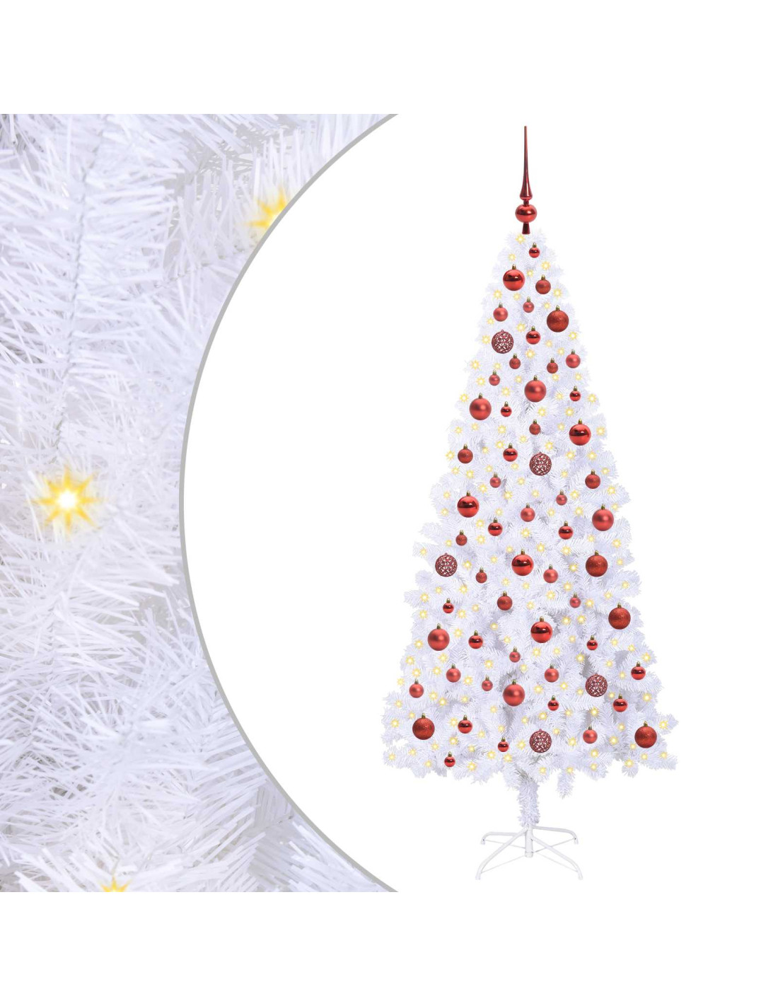 - Composizione del materiale: Questo albero è fatto in PVC e acciaio di alta qualità, per una struttura robusta che regge in vari ambienti. Il PVC è resistente e tiene bene nel tempo, così puoi goderti le feste senza preoccupazioni.