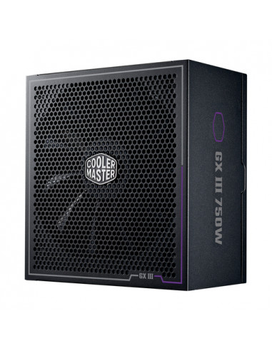 Cooler Master GX III Gold 750. Potenza totale: 750 W, Tensione di ingresso AC: 100 - 240 V, Frequenza di ingresso AC: 50/60 Hz. Connettore scheda madre: 24-pin ATX, Lunghezza del cavo di alimentazione della scheda madre: 61 cm, Lunghezza del cavo di alimentazione SATA: 120,500 mm. Utilizzo: PC, Fattore di forma dell'unità di alimentazione (PSU): ATX, Certificazione 80 PLUS: 80 PLUS Gold. Colore del prodotto: Nero, Tipo di raffreddamento: Attivo, Diametro del ventilatore: 13,5 cm. Larghezza: 150 mm, Profondità: 160 mm, Altezza: 86 mm