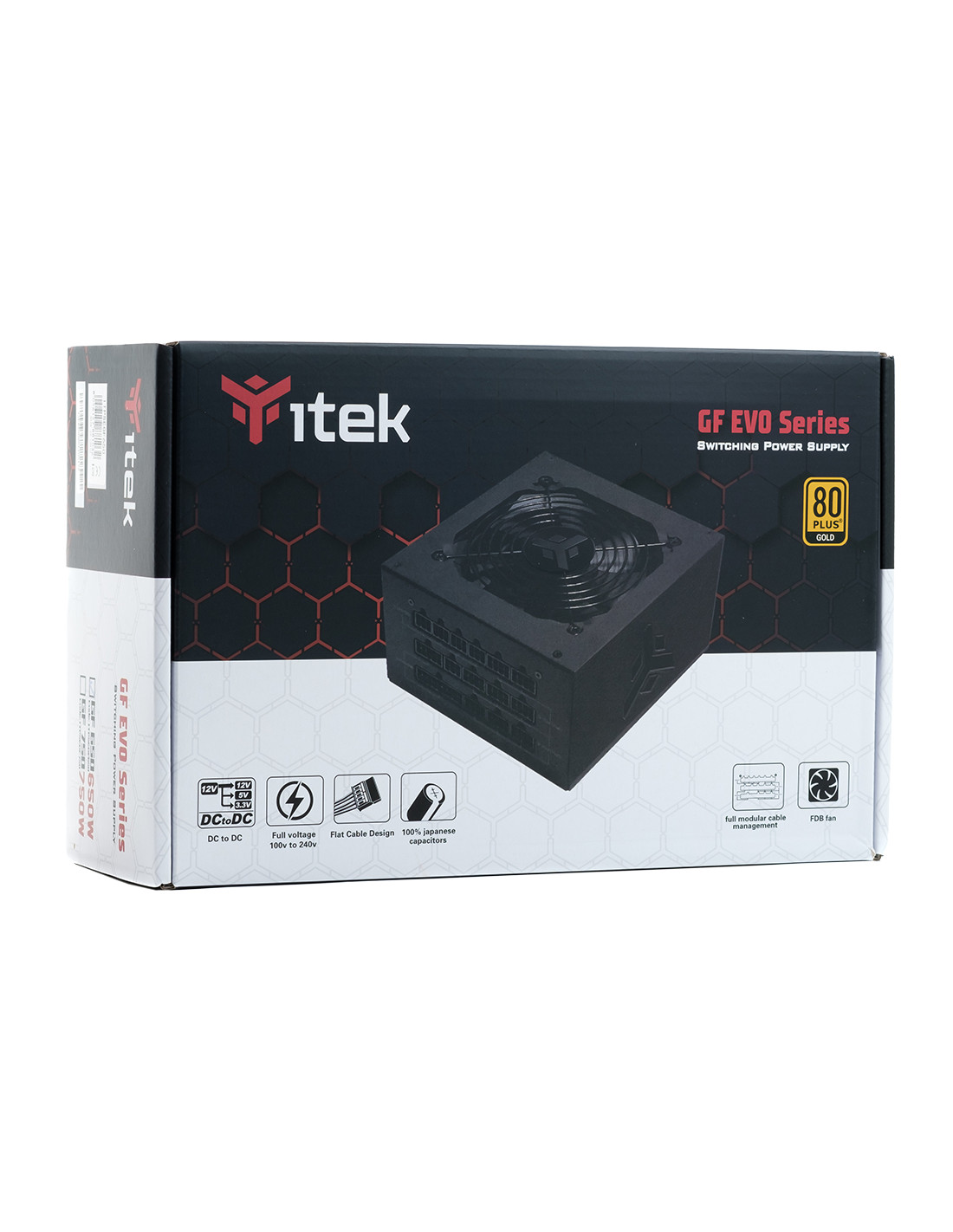 Gli alimentatori della serie GF sono il TOP di gamma di itek. Disponibili con potenze da 650W, 750W e 850W e un efficienza del 90% al 50% di carico, la quale ha permesso di ottenere la prestigiosa certificazione 80Plus® Gold. Questi PSU, con regolazione DC to DC, completamente modulari “free plug”, sono dotati di PFC attivo e dispongono di comodi cavi flat, di una ventola silenziosa da 120mm FDB “Fluid Dynamic Bearing” con controllo termico, di chassis con effetto “ruvido” anti graffio e di condensatori Giapponesi 105c. Tutti dettagli che rendono questi alimentatori estremamente affidabili, silenziosi e di ottima qualità.