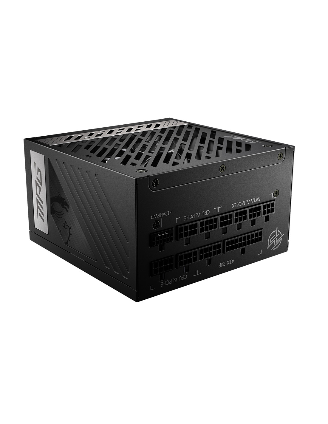 MSI MPG A1000G PCIE5. Potenza totale: 1000 W, Tensione di ingresso AC: 100 - 240 V, Frequenza di ingresso AC: 50 - 60 Hz. Connettore scheda madre: 20+4 pin ATX, Lunghezza del cavo di alimentazione della scheda madre: 60 cm, Lunghezza del cavo di alimentazione SATA: 500,650,700,850 mm. Utilizzo: PC/server, Fattore di forma dell'unità di alimentazione (PSU): ATX, Certificazione 80 PLUS: 80 PLUS Gold. Colore del prodotto: Nero, Tipo di raffreddamento: Attivo, Diametro del ventilatore: 13,5 cm. Larghezza: 150 mm, Profondità: 150 mm, Altezza: 86 mm
