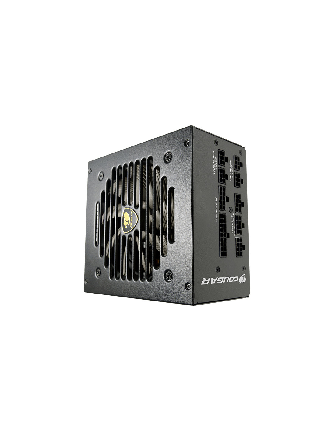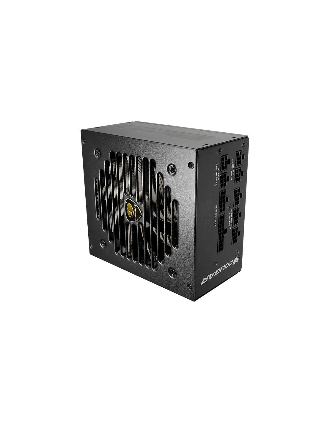 COUGAR CGRGEX-750. Potenza totale: 750 W, Tensione di ingresso AC: 100 - 240 V, Frequenza di ingresso AC: 50 - 60 Hz. Connettore scheda madre: 20+4 pin ATX, Lunghezza del cavo di alimentazione della scheda madre: 61 cm, Lunghezza del cavo di alimentazione SATA: 120,450 mm. Utilizzo: PC, Fattore di forma dell'unità di alimentazione (PSU): ATX, Certificazione 80 PLUS: 80 PLUS Gold. Colore del prodotto: Nero, Tipo di raffreddamento: Attivo, Diametro del ventilatore: 12 cm. Cavi inclusi: AC, CPU, PCIe, Peripheral (Molex), SATA