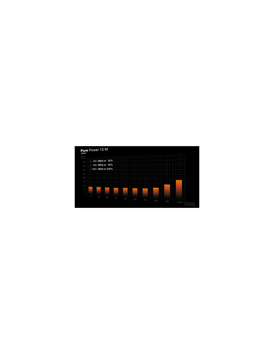 be quiet! Pure Power 13 M | 1000W. Potenza totale: 1000 W, Tensione di ingresso AC: 100 - 240 V, Potenza di picco: 1050 W. Connettore scheda madre: 20+4 pin ATX, Lunghezza del cavo di alimentazione della scheda madre: 55 cm, Lunghezza del cavo di alimentazione SATA: 500,650,800,950 mm. Utilizzo: PC, Fattore di forma dell'unità di alimentazione (PSU): ATX, Certificazione 80 PLUS: 80 PLUS Gold. Colore del prodotto: Nero, Tipo di raffreddamento: Attivo, Diametro del ventilatore: 12 cm. Cavi inclusi: AC, CPU, PCIe, Peripheral (Molex), SATA