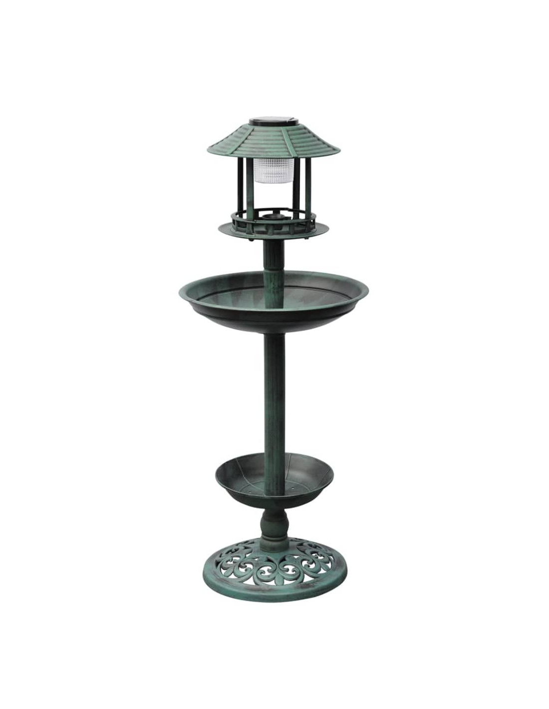 Questa vaschetta decorativa per uccelli attirerà l'attenzione nel vostro giardino, balcone, patio, ecc. Il vassoio inferiore può essere utilizzato per coltivare piante o fiori e queste piante rimarranno asciutte. La grande ciotola al centro può essere riempita d'acqua per far fare il bagno agli uccelli. Ha un pannello solare integrato che fornisce una luce delicata per ore di notte. Questa attraente funzione da giardino regalerà sicuramente a voi e ai vostri uccelli da giardino ore di piacere.