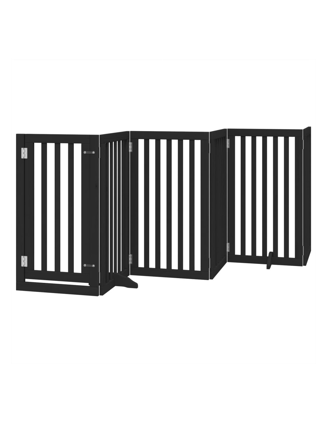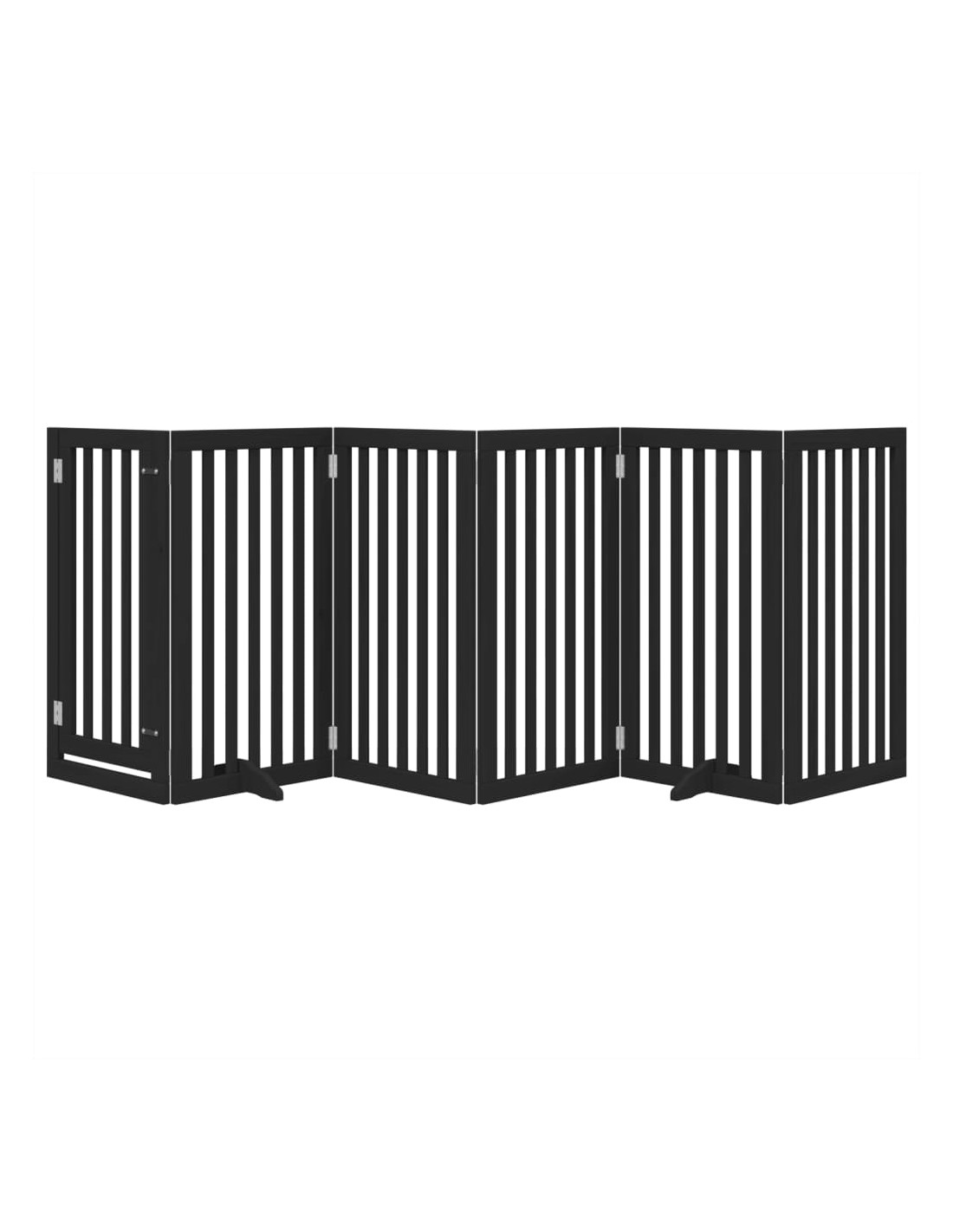 Cancello per Cani Porta Pieghevole Nero 6 Pannelli 300cm Pioppo