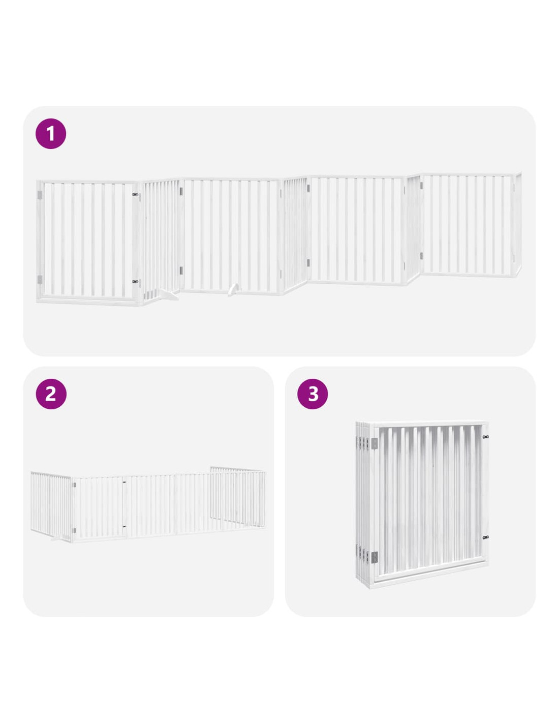 Cancello Cani Porta Pieghevole Bianco 12 Pannelli 640 cm Pioppo