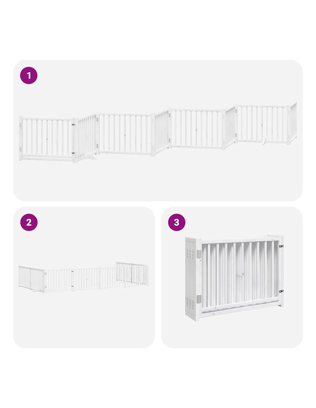 Cancello Cani Porta Pieghevole Bianco 12 Pannelli 640 cm Pioppo