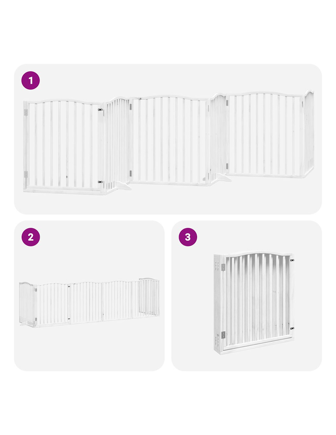 - Molteplici applicazioni: Questo cancello per cani può impedire efficacemente ai vostri animali domestici di saltare e passare dall'altro lato. Pertanto, è perfetto per tenere al sicuro i vostri animali domestici in soggiorno, cucina, scale e porte.