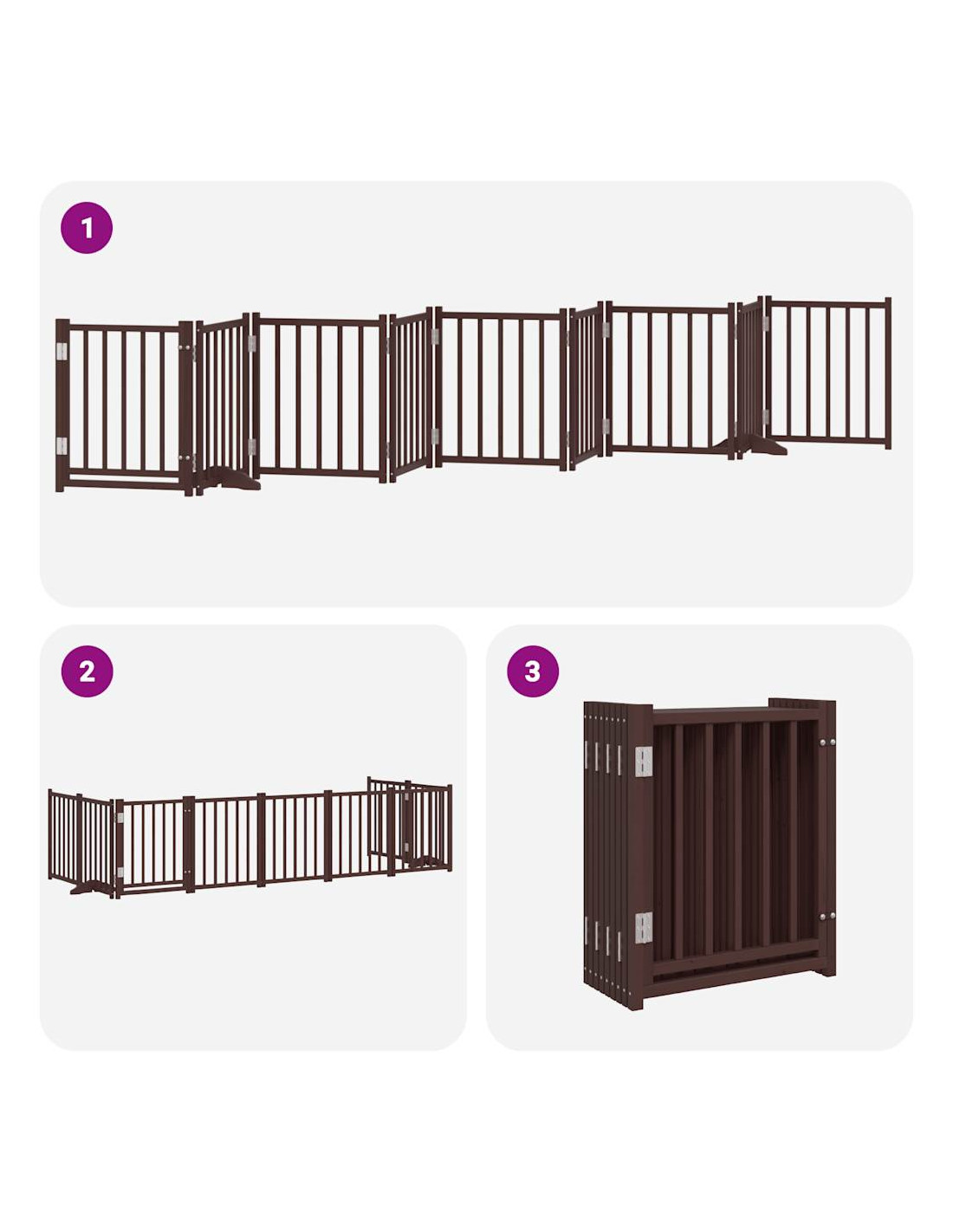 Cancello Cani Porta Pieghevole Marrone 9 Pannelli 450cm Pioppo
