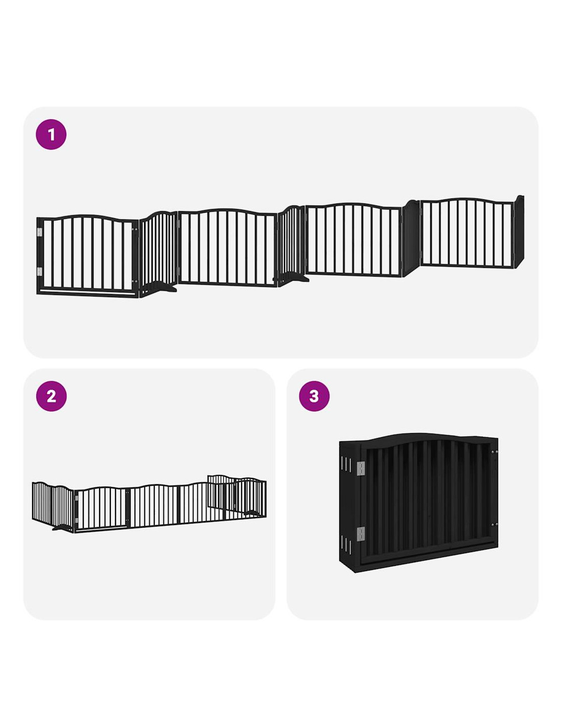 Cancello Cani Porta Pieghevole Nero 8 Pannelli 640 cm Pioppo