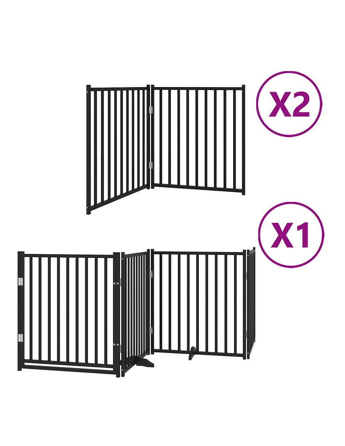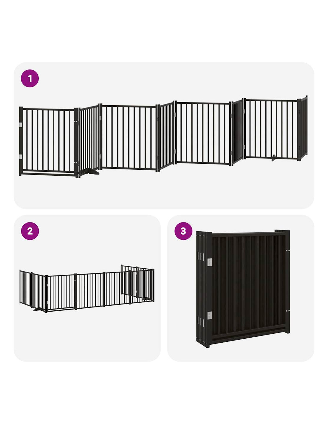 Cancello Cani Porta Pieghevole Nero 8 Pannelli 640 cm Pioppo