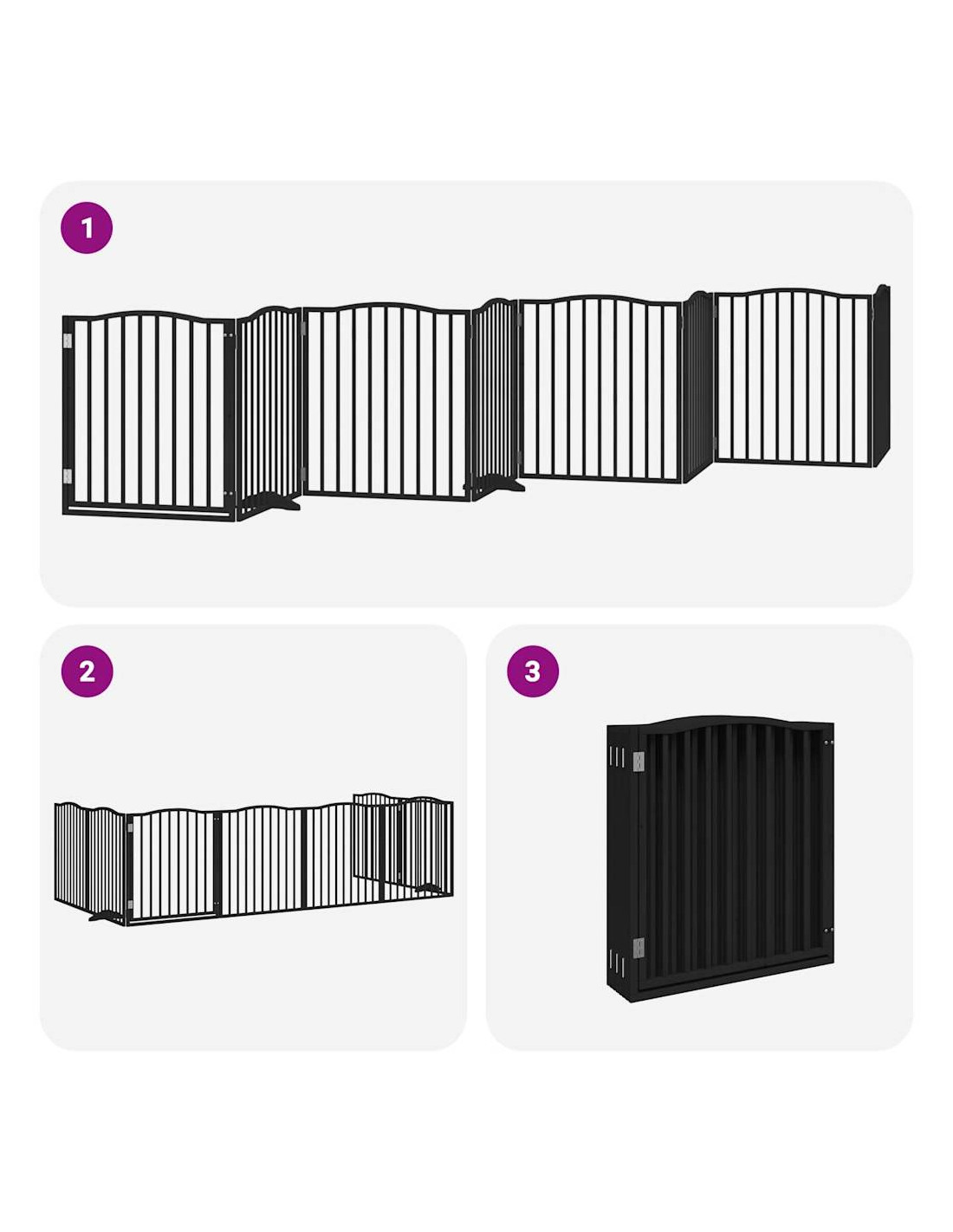 Cancello Cani Porta Pieghevole Nero 8 Pannelli 640 cm Pioppo