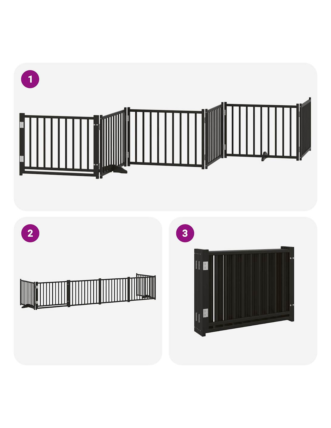 Cancello per Cani Porta Pieghevole Nero 6 Pannelli 480cm Pioppo