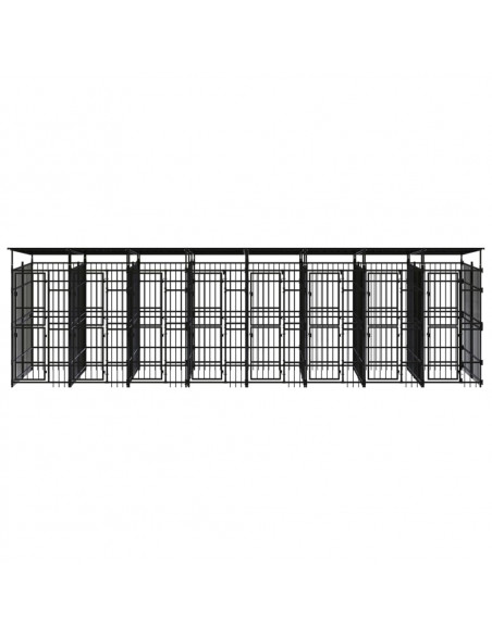 Questa gabbia per cani offre ampio spazio per gli esercizi. Le pareti a barre d'acciaio aiutano a prevenire danni e incidenti imprevisti consentendo al tempo stesso la ventilazione. Grazie alla robusta struttura in acciaio verniciato a polvere, questa cuccia per cani è resistente e costruita per durare. Il tetto offre protezione da sole, pioggia, neve e altre condizioni atmosferiche. La porta a battente con sistema di chiusura con serratura garantisce maggiore sicurezza e protezione per i vostri cani.