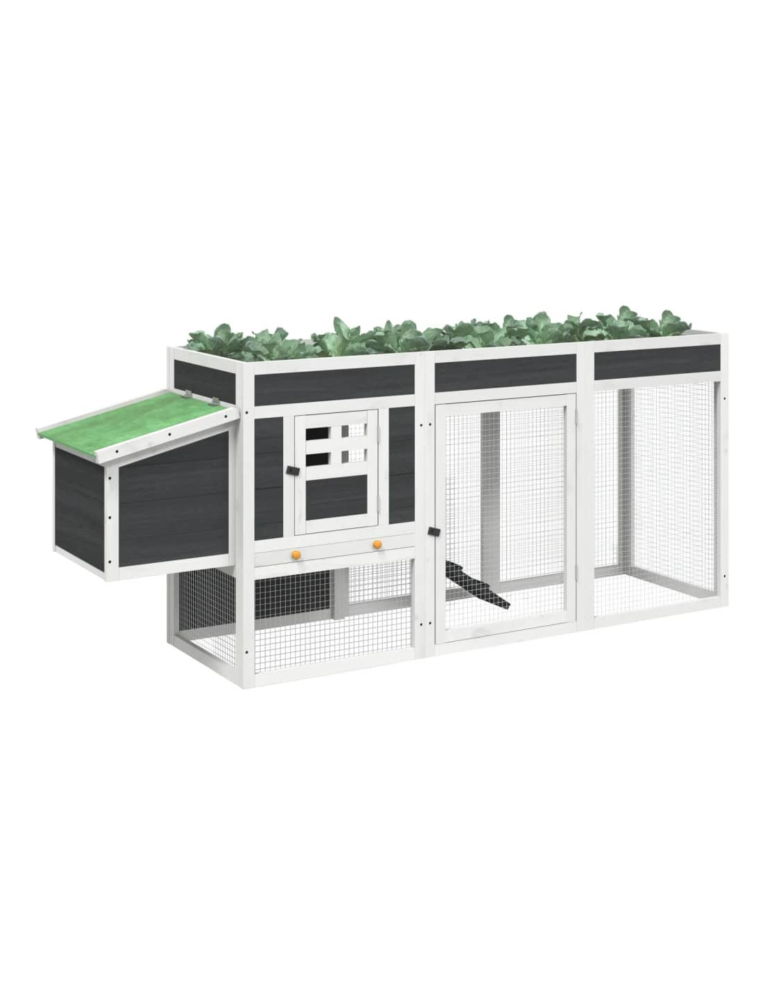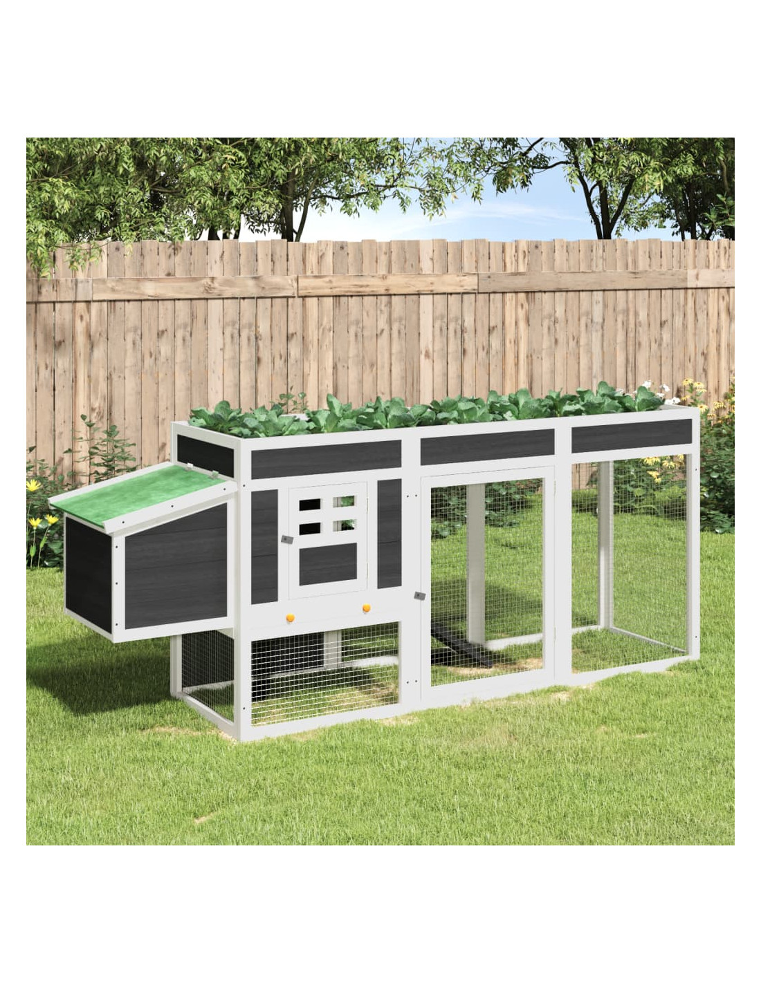 - Ampio utilizzo: La cassetta di nidificazione per i polli è adatta anche ad altri animali, come conigli, anatre, oche e uccelli, e così via. Inoltre, potete piantare erbe aromatiche o verdure sulla parte superiore della casetta per polli.