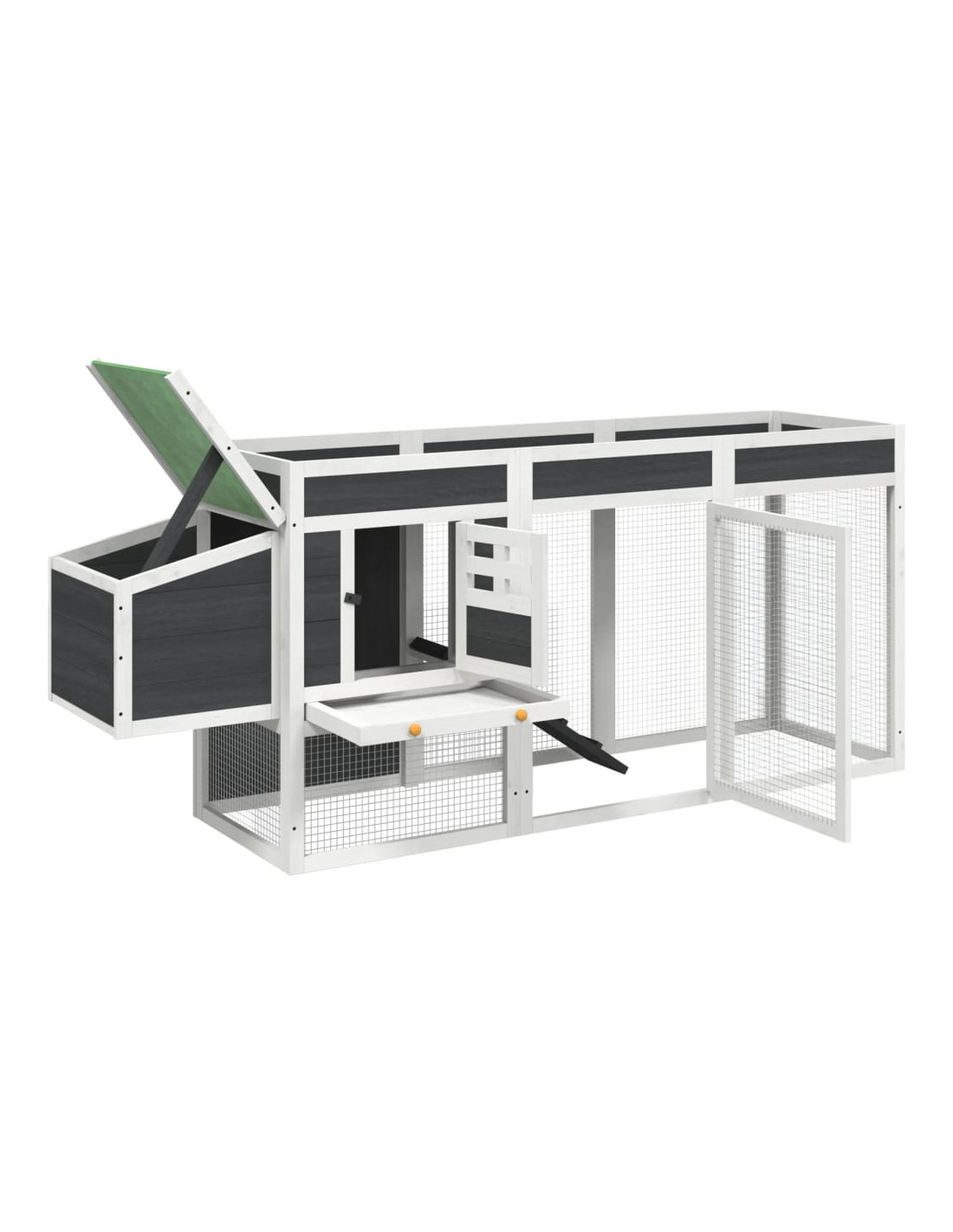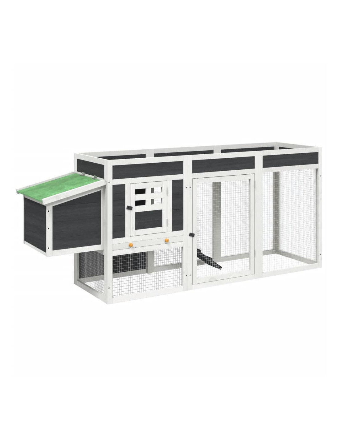 - Tetto resistente all'acqua: Il tetto impermeabile di questo recinto per polli offre ai vostri animali domestici un ambiente caldo, asciutto, sicuro e confortevole.