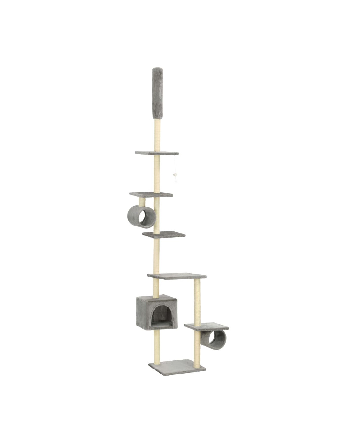 I vostri amici felini potranno affilare i loro artigli nelle aree tiragraffi avvolte in corda sisal, in questo modo sfogheranno il loro istinto di graffiare nel migliore dei modi. Si divertiranno inoltre a rincorrersi l'un l'altro saltando su e giù in questa divertente area gioco. Sono presenti alcuni giochini pendenti che incuriosiranno i vostri gatti. Quando ne avranno avuto abbastanza di giocare, i vostri piccoli amici adoreranno riposare sui ripiani alti dove godranno di una vista migliore. Potranno inoltre nascondersi nell'accogliente casetta o all'interno del tunnel per fare un pisolino.