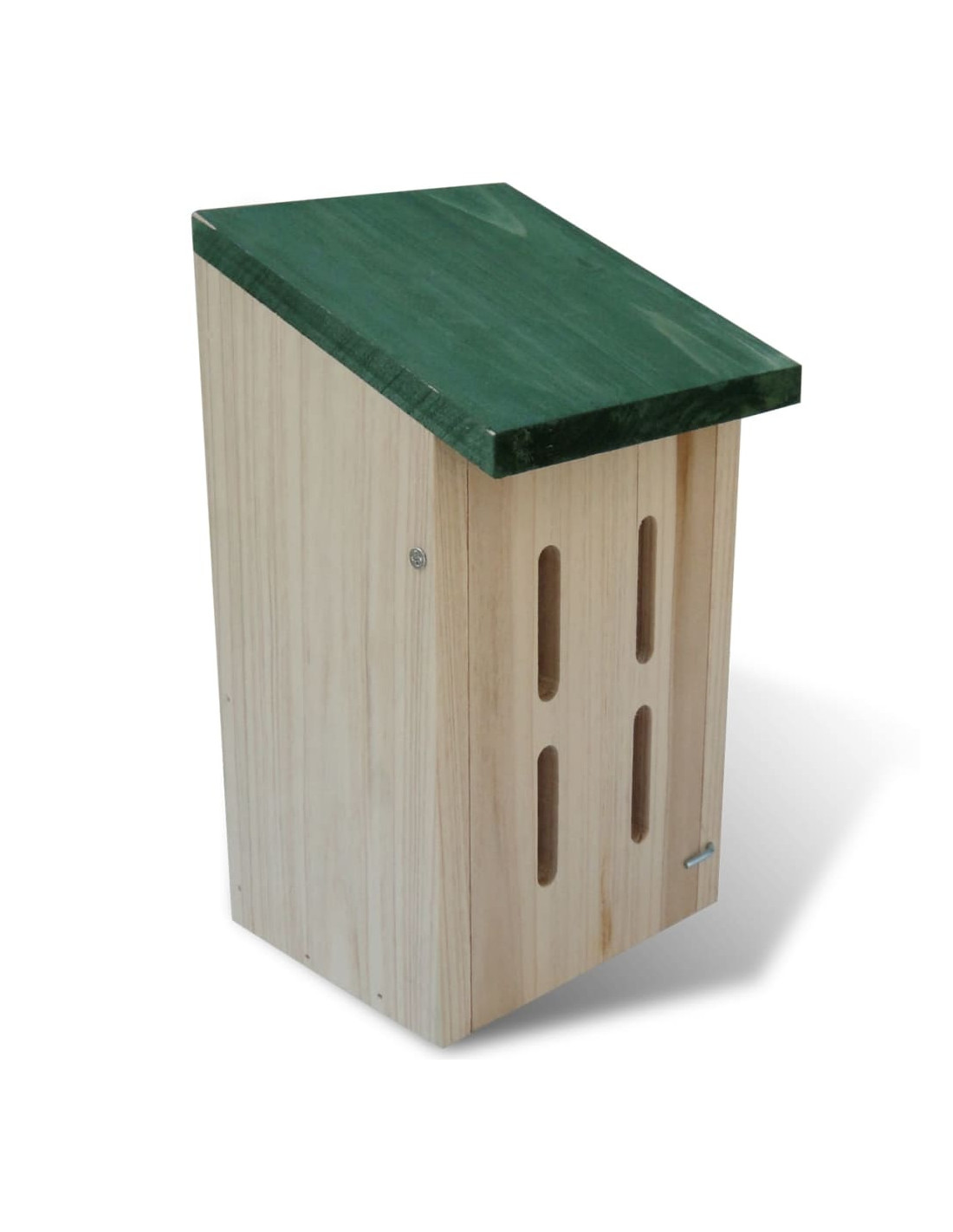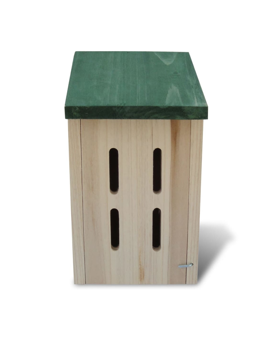 La struttura è realizzata con i colori naturali del legno ed è dotata di un tetto verde, e sarà un bell'elemento decorativo oltre che un ottimo luogo di nidificazione per le farfalle. Le fessure nelle case delle farfalle tengono lontani gli uccelli mentre offrono riparo alle farfalle dal vento e dalle intemperie. Ogni casa delle farfalle ha una sportellino per la pulizia, che vi permetterà di prendervi cura dei vostri amici alati. Equipaggiate con una attacco in metallo, sono pronte per essere fissate nel vostro giardino.