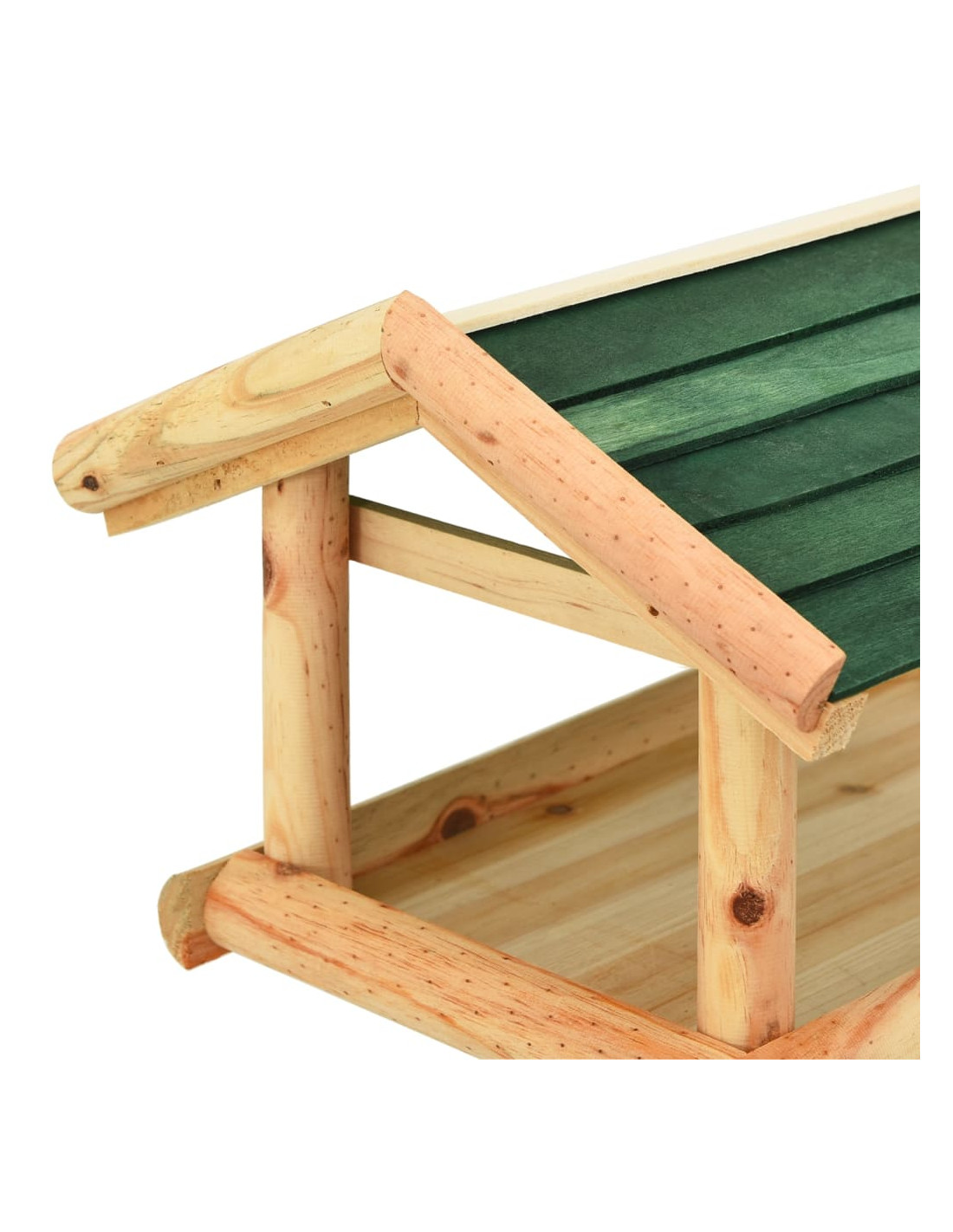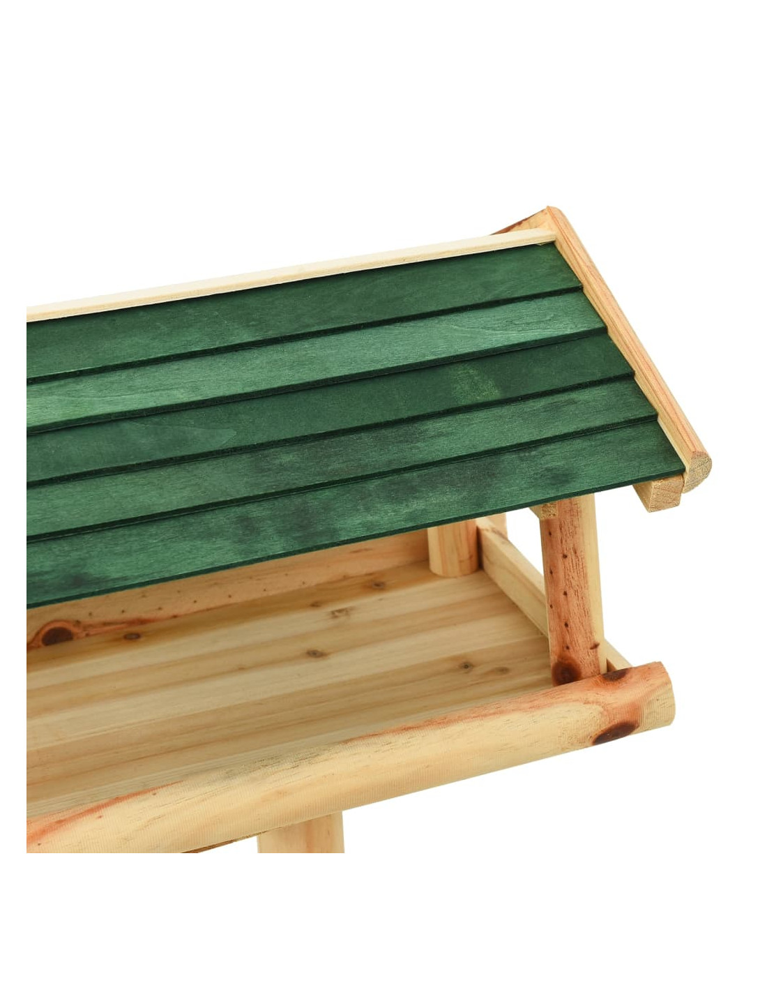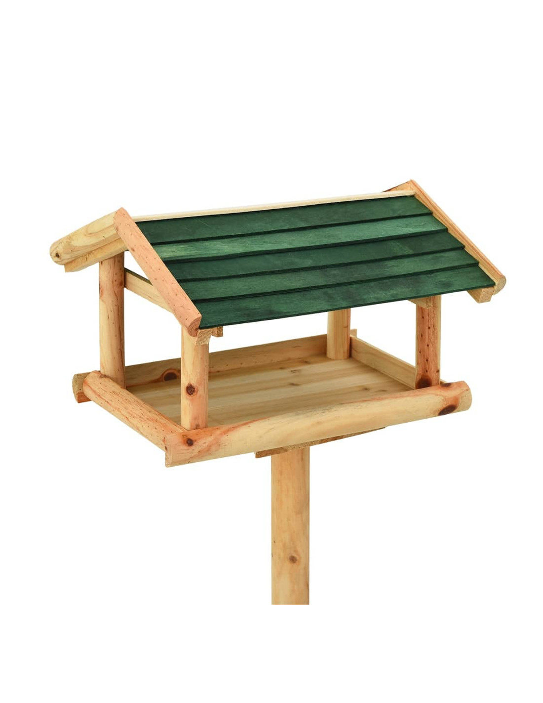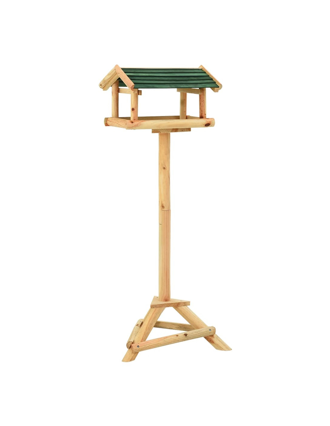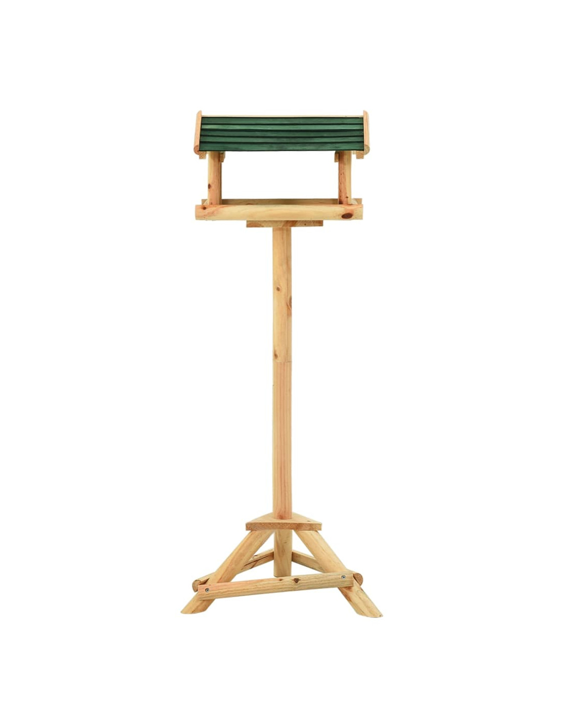La mangiatoia, realizzata in legno massello di abete, è durevole, resistente agli agenti atmosferici e può essere utilizzata tutto l'anno. La stazione di alimentazione è aperta sui lati, il che rende comodo riempirla con il cibo. La grande piattaforma offre un posto tranquillo dove gli uccelli possono mangiare e riposare. Il tetto di protezione mantiene il cibo asciutto. Inoltre, i piedini del treppiede mantengono la mangiatoia stabile.