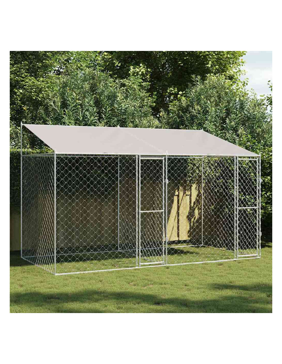 La gabbia per cani da esterno rustica con tetto è un rifugio sicuro e spazioso per razze grandi come Golden Retriever e Huskies. Con uno stile rustico, si adatta bene a giardini e terrazzi, combinando una forma robusta con funzionalità moderna. La sua forma rettangolare offre tanto spazio per muoversi e giocare, ideale per cani che hanno bisogno di essere all'aperto. Questa gabbia è fatta per durare, con un telaio in acciaio resistente agli agenti atmosferici. Garantisci un luogo spazioso e areato, dove il tuo animale può rilassarsi e godere dell'aria fresca.