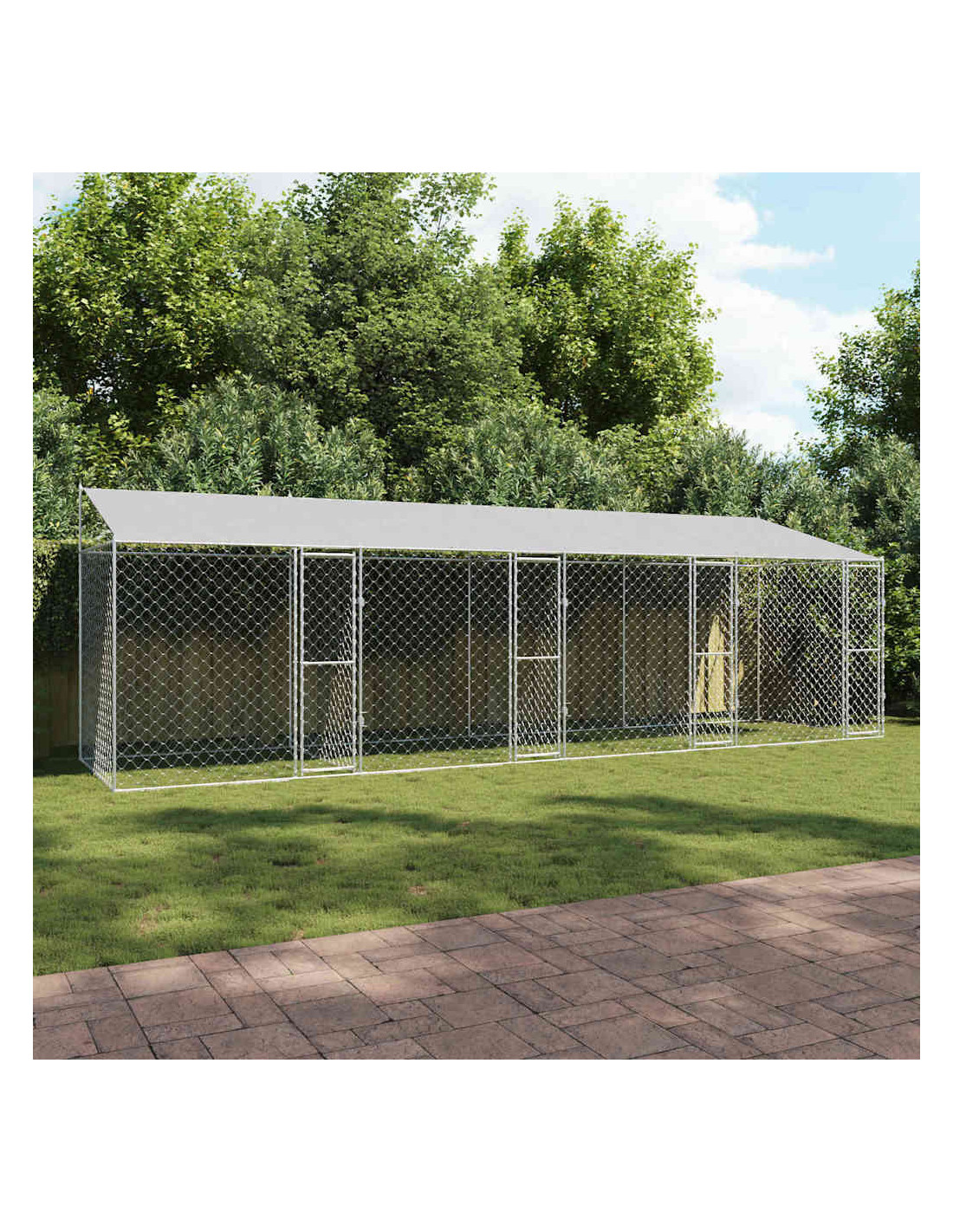 La gabbia per cani da esterno rustica con tetto è un rifugio sicuro e spazioso per razze grandi come Golden Retriever e Huskies. Con uno stile rustico, si adatta bene a giardini e terrazzi, combinando una forma robusta con funzionalità moderna. La sua forma rettangolare offre tanto spazio per muoversi e giocare, ideale per cani che hanno bisogno di essere all'aperto. Questa gabbia è fatta per durare, con un telaio in acciaio resistente agli agenti atmosferici. Garantisci un luogo spazioso e areato, dove il tuo animale può rilassarsi e godere dell'aria fresca.