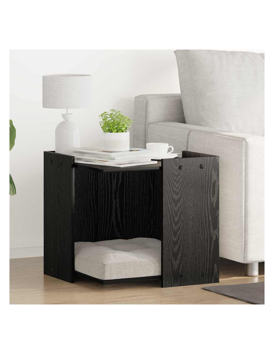 Questa gabbia per lettiera in legno è un'aggiunta di stile per qualsiasi soggiorno. È progettata per chi cerca un modo elegante di gestire le lettiere. Questo pezzo moderno nasconde in modo discreto le lettiere, mantenendo un aspetto raffinato che si adatta a qualsiasi arredamento. È adatta per l'uso interno, e il suo design minimalista unisce stile e funzionalità.