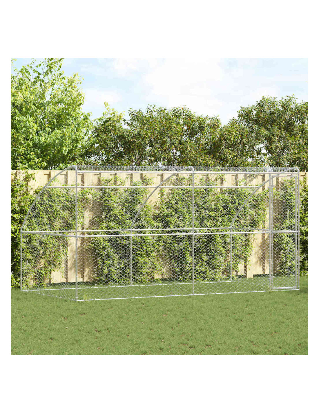 - Acciaio galvanizzato: Questo kennel è fatto in acciaio galvanizzato, noto per la sua durabilità. Resiste a condizioni meteorologiche difficili, rendendolo una scelta sicura e durevole. L'aspetto riflettente dell'acciaio ci sta bene in qualsiasi spazio all'aperto.