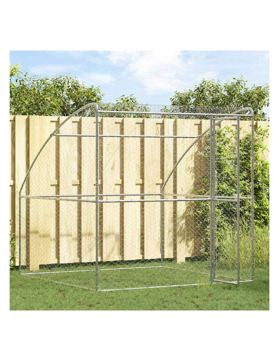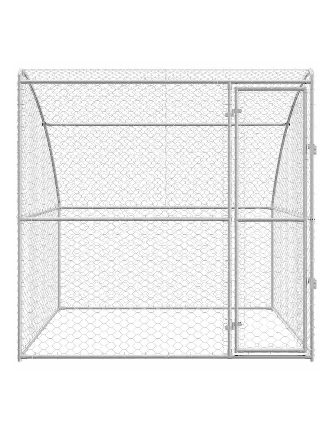 - Acciaio galvanizzato: Questo kennel è fatto in acciaio galvanizzato, noto per la sua durabilità. Resiste a condizioni meteorologiche difficili, rendendolo una scelta sicura e durevole. L'aspetto riflettente dell'acciaio ci sta bene in qualsiasi spazio all'aperto.