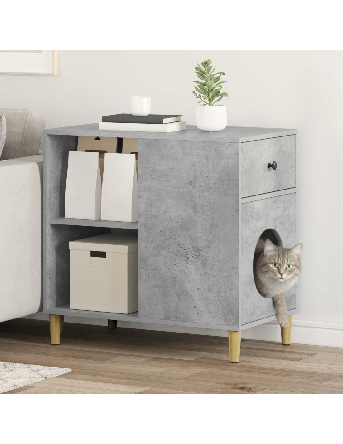 Questa Casa Moderna per Gatti si sposa benissimo con qualsiasi tipo di arredamento, creando così un rifugio chic per i tuoi gatti. È un pezzo da notare in ogni soggiorno grazie al suo design minimalista e alla sua praticità. Progettata per i gatti, offre un posto caldo dove riposare e giocare durante l'autunno e l'inverno.