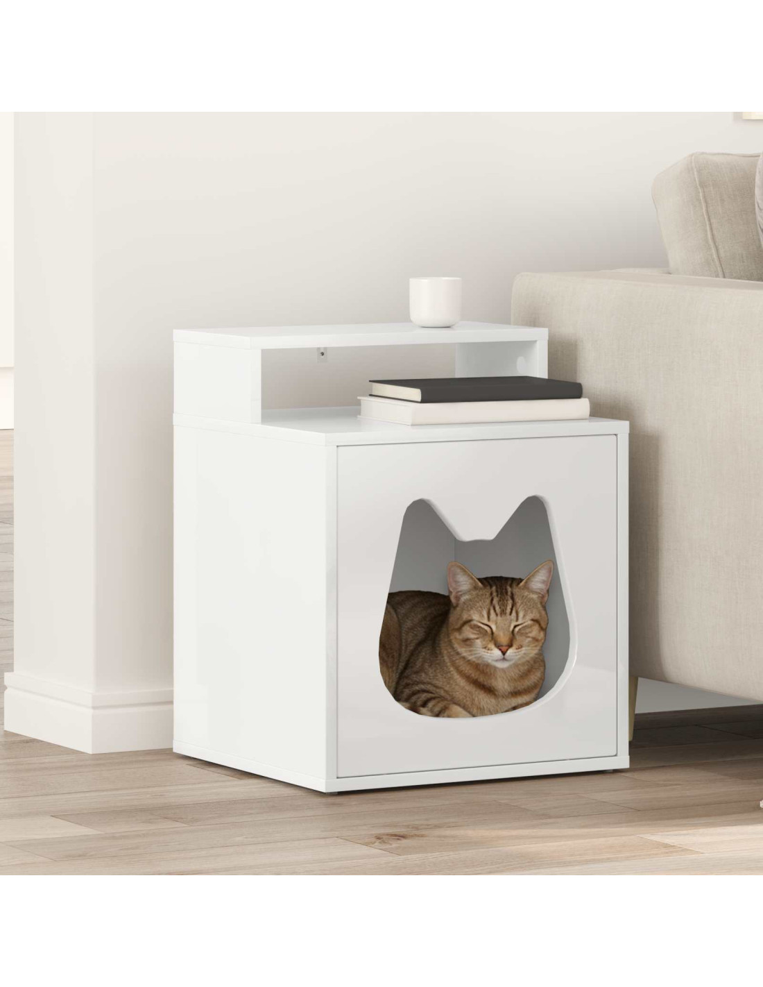 La casa per gatti moderna è un'aggiunta elegante e pratica allo spazio del tuo animale. Fatta in legno ingegnerizzato, questa casa rettangolare è ideale per uso interno e crea un rifugio accogliente per il tuo felino. Con il suo design moderno, caratterizzato da linee semplici e un tocco di minimalismo, si adatta facilmente in qualsiasi soggiorno, offrendo un posto caldo per i gatti durante l’autunno e l'inverno.