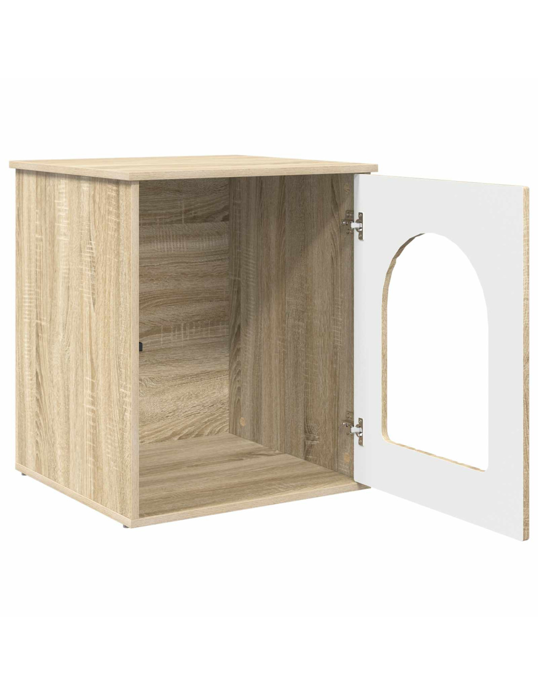 - Materiale: Realizzata in legno ingegnerizzato, resistente e uniforme. Questo materiale duraturo assicura un uso prolungato senza compromettere il design elegante, rendendola ideale per gli interni moderni. Resiste all'usura quotidiana e mantiene un aspetto raffinato, creando un rifugio accogliente per il tuo gatto.