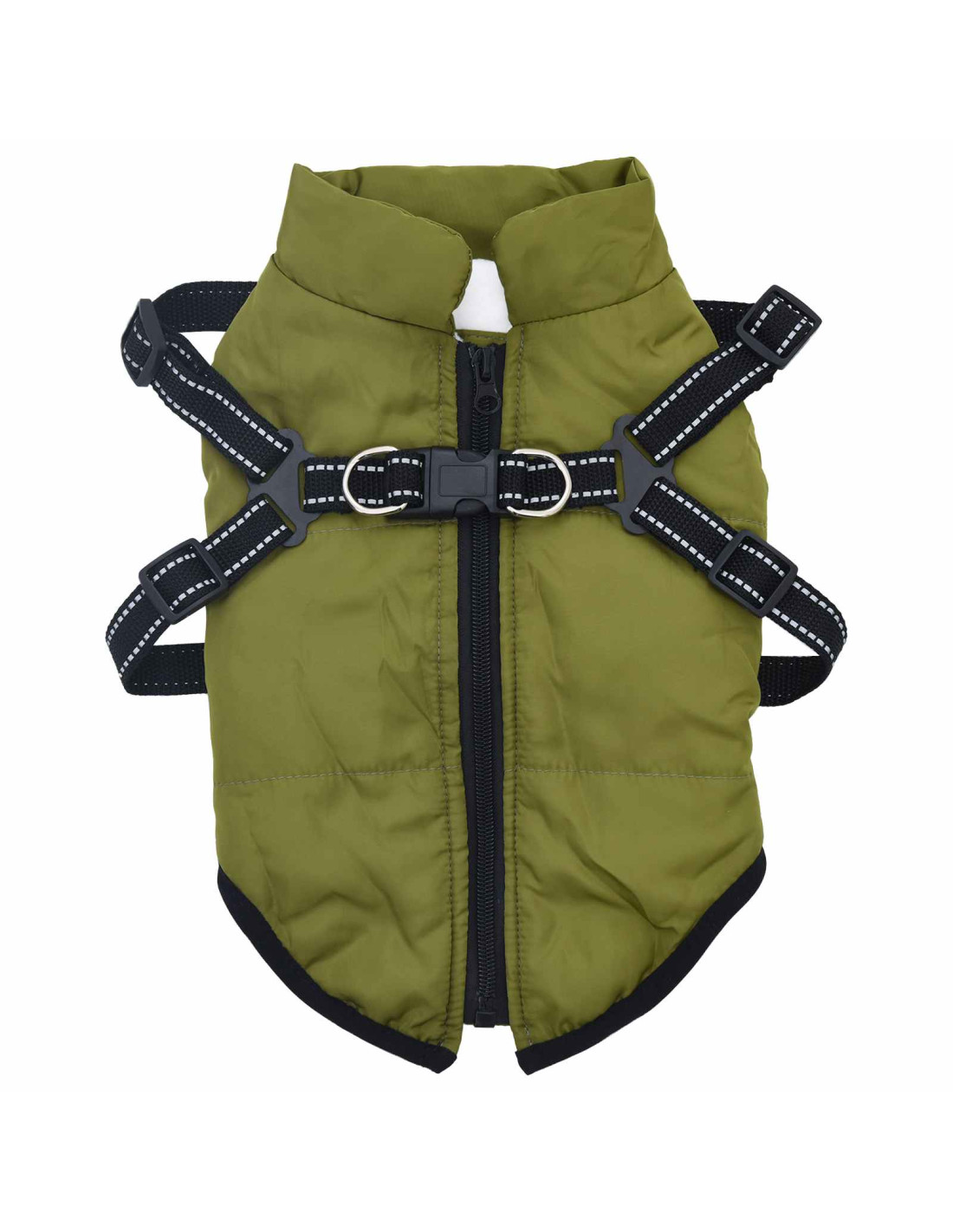 - Imbracatura integrata: Con una zip posteriore e doppi D-ring, questo cappotto ha un sistema di imbracatura integrata molto pratico. Così puoi legarlo in modo sicuro senza bisogno di collari o imbracature aggiuntive, rendendo più facili i tuoi preparativi per uscire.