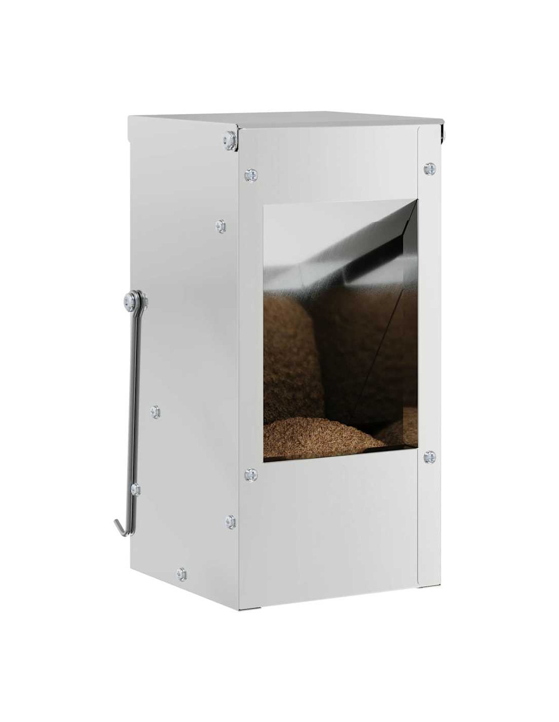 - Opzioni di montaggio: Con comodi ganci, il mangiatoio si può montare facilmente su grigliati o pareti a seconda delle tue esigenze. Questo offre versatilità e ti permette di ottimizzare lo spazio.