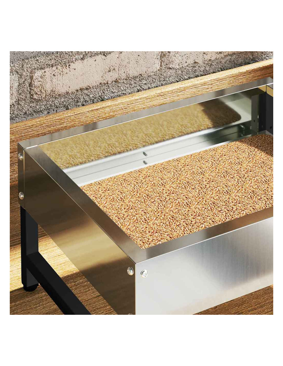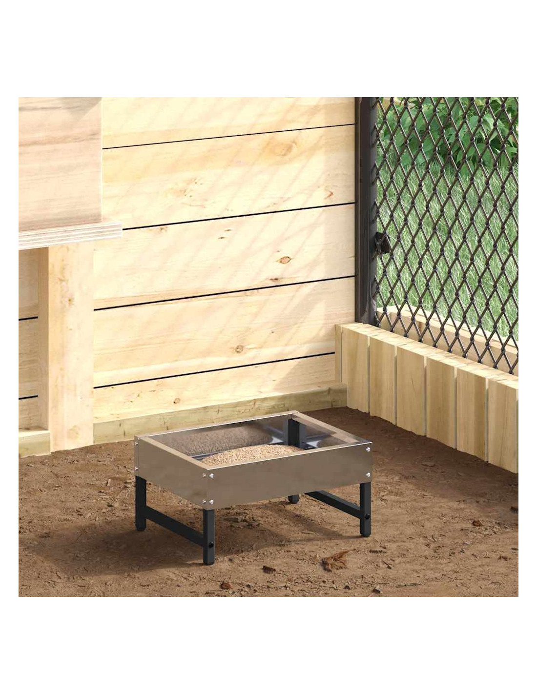 Questa mangiatoia per polli è un must per chi vuole un allevamento avicolo efficiente. Con un design moderno e semplice, si adatta perfettamente a qualsiasi ambiente, sia in giardino che in terrazza. Che sia in un angolo tranquillo o in uno spazio urbano, offre un accesso facile ai pasti per le galline, arricchendo l'arredamento con la sua eleganza discreta. Perfetta per gli amanti dei pollame, combina funzionalità e stile.