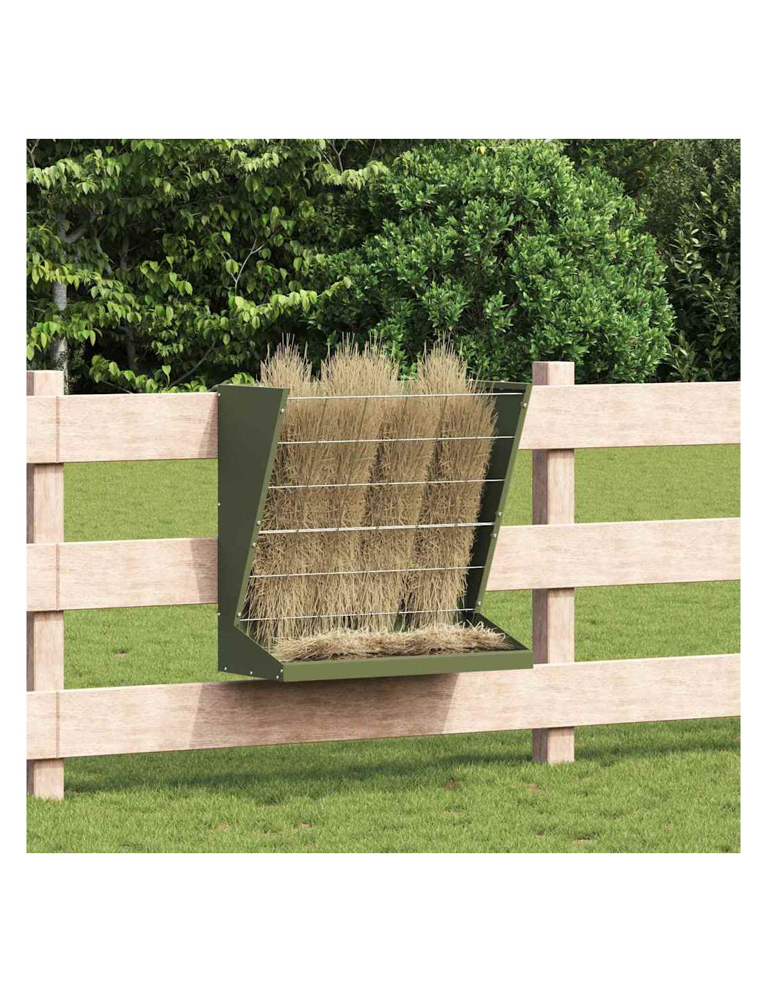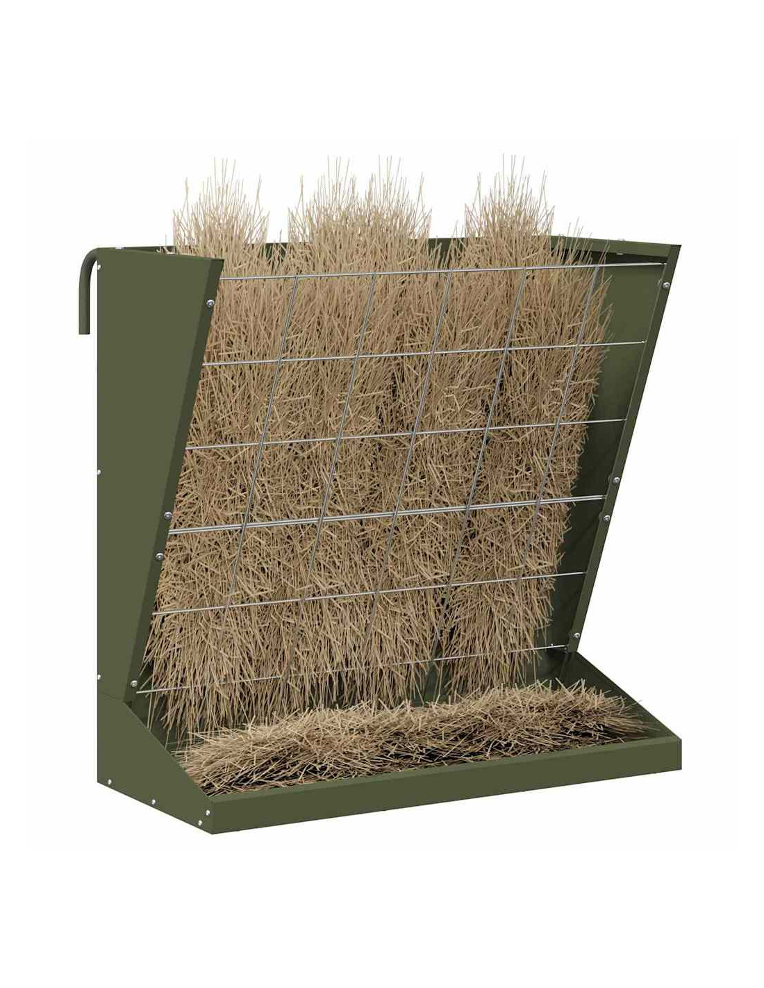 - Caratteristiche pratiche: Facile da utilizzare, ha un sistema di sospensione che lo rende semplice da posizionare su ringhiere o recinzioni. Questo riduce il tempo di alimentazione, aumentando l'efficienza. Con il vassoio incluso, la distribuzione del fieno è facile e senza sprechi.