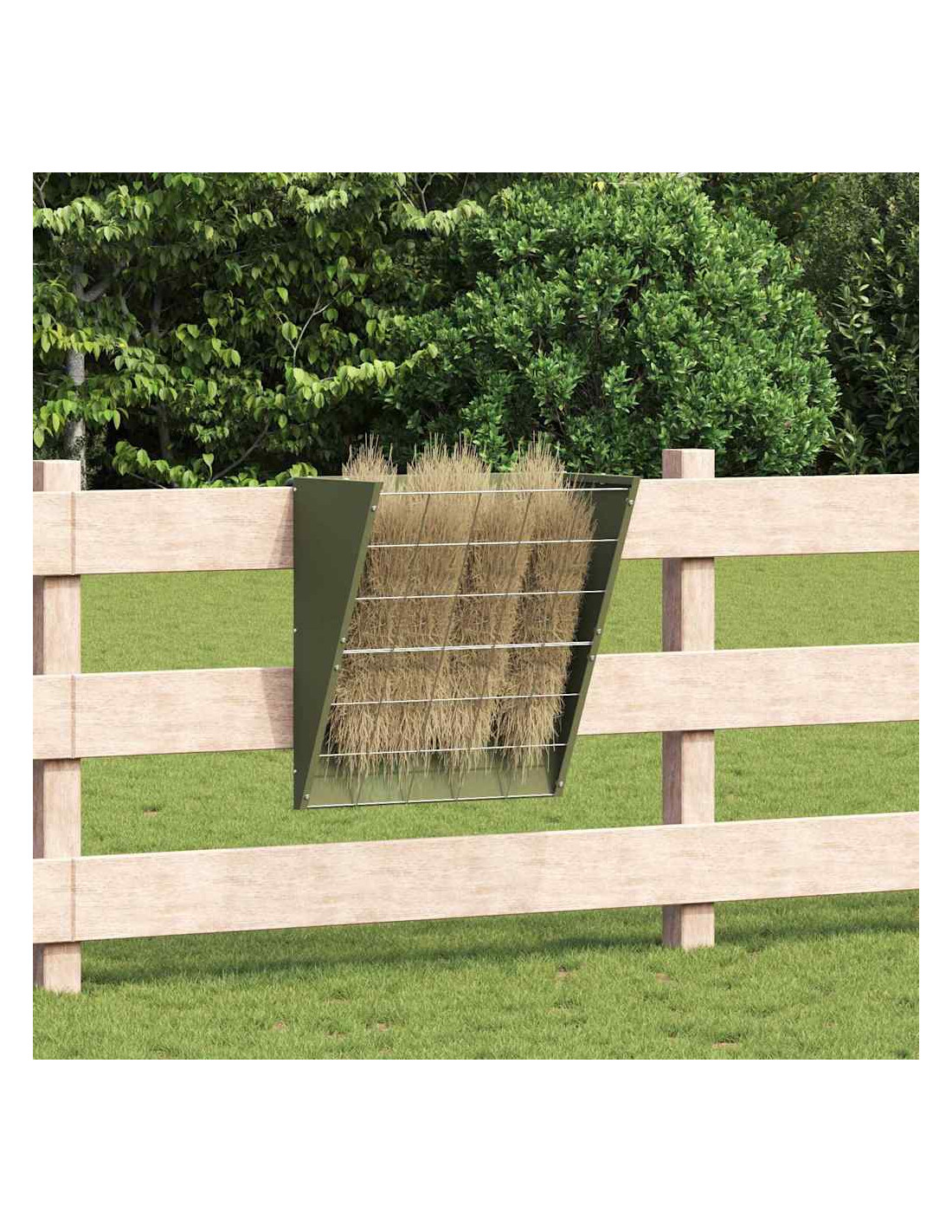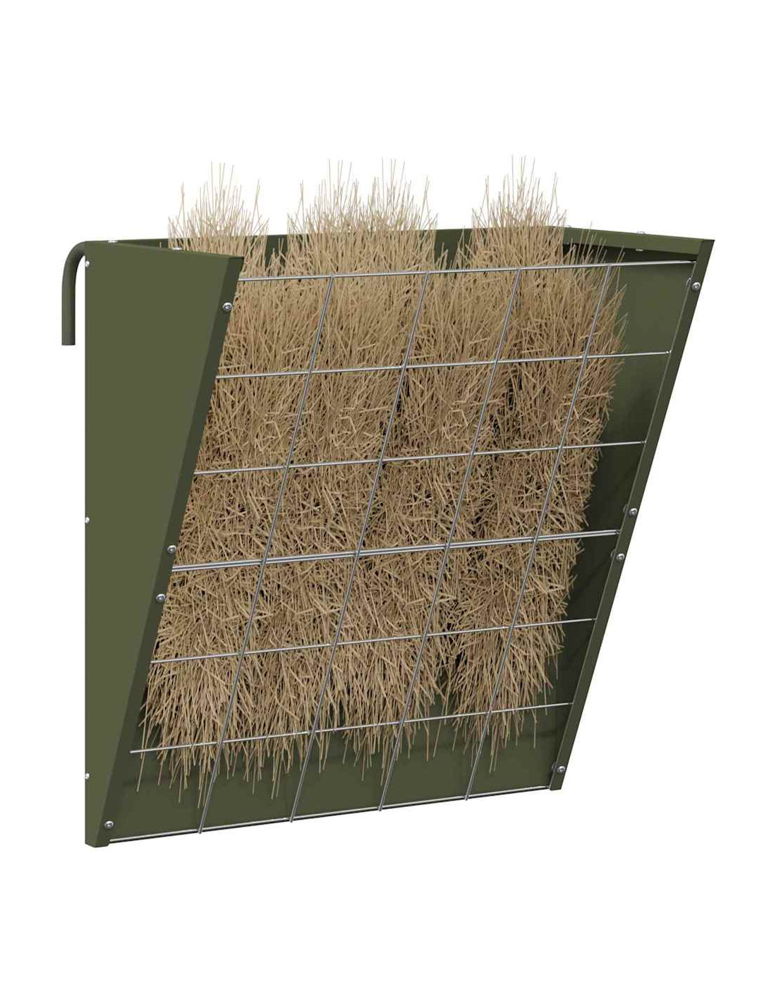 - Costruzione in Acciaio: Realizzato in acciaio resistente, questo distributore di fieno offre una struttura solida che regge all'uso frequente. Il materiale di qualità garantisce prestazioni durature in varie condizioni, aiutandolo a resistere anche a manipolazioni brusche da parte degli animali.