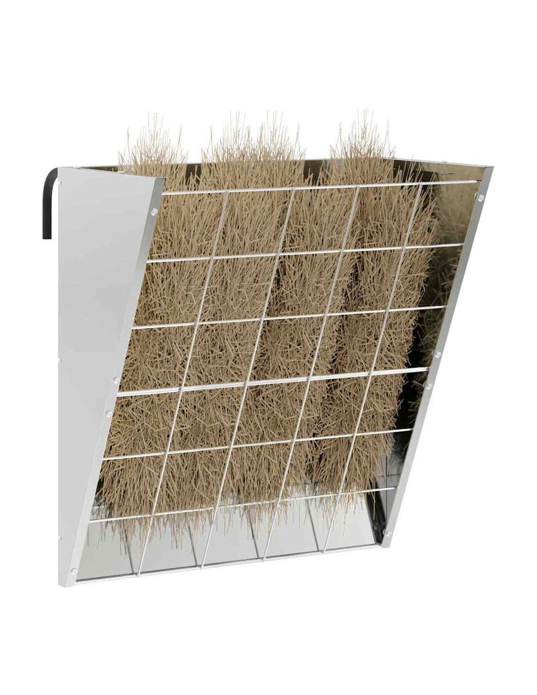 - Costruzione in Acciaio: Realizzato in acciaio resistente, questo distributore di fieno offre una struttura solida che regge all'uso frequente. Il materiale di qualità garantisce prestazioni durature in varie condizioni, aiutandolo a resistere anche a manipolazioni brusche da parte degli animali.