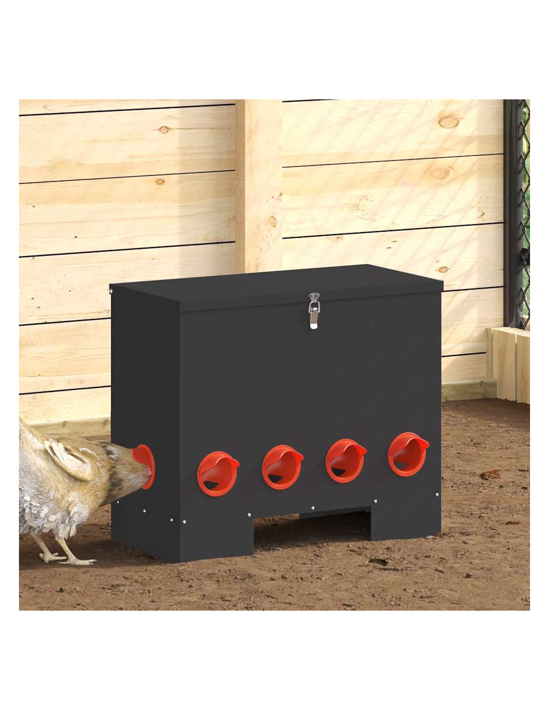 - Caratteristiche Incluse: Questo mangiatore ha un ampio interno per contenere tanto cibo per polli, progettato per ridurre il bisogno di continui rifornimenti. È elegante e rende facile l'accesso al cibo per i polli, mantenendolo al sicuro dagli agenti atmosferici.