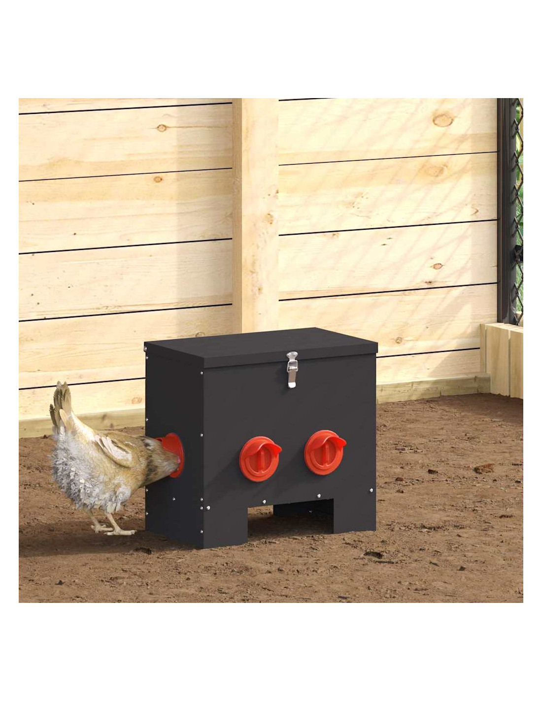 - Caratteristiche Incluse: Questo mangiatore ha un ampio interno per contenere tanto cibo per polli, progettato per ridurre il bisogno di continui rifornimenti. È elegante e rende facile l'accesso al cibo per i polli, mantenendolo al sicuro dagli agenti atmosferici.