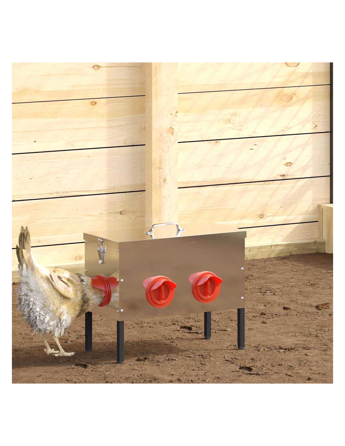 - Adattabilità interna ed esterna: La mangiatoia si adatta facilmente sia all'interno che all'esterno, offrendo versatilità nel posizionamento. Perfetta per un pollaio in giardino o un ricovero al chiuso, soddisfa diverse necessità di alimentazione.