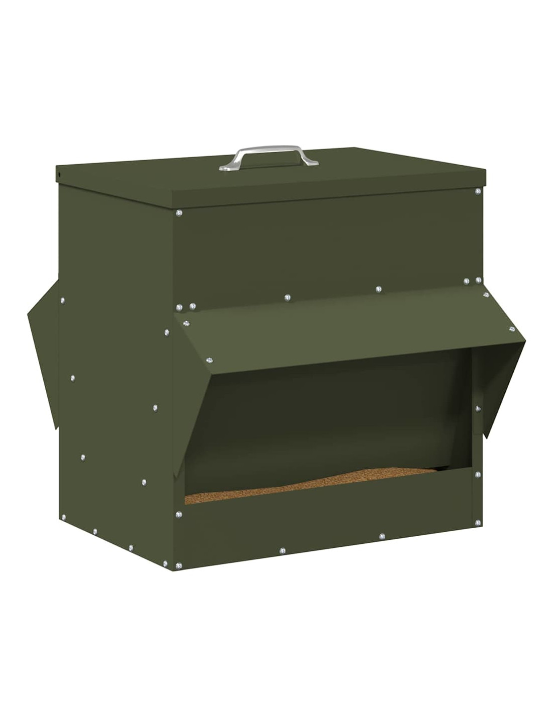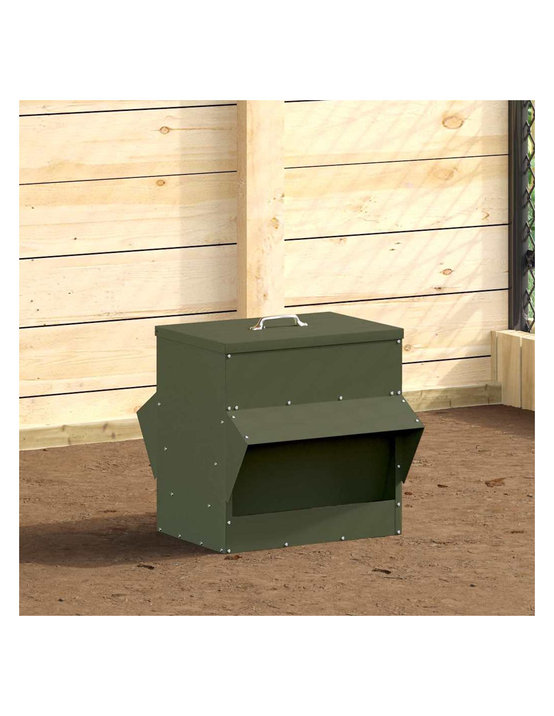 Questa mangiatoia per polli in metallo è un elemento chiave per chi alleva pollame. Ha un design moderno che unisce stile e praticità, adatta per interni e esterni. Perfetta per gli allevatori più esigenti, ha una grande capacità che garantisce longevità e poca manutenzione. La forma è pensata per tenere il cibo sempre a disposizione, mentre il tetto protegge il mangime dalle intemperie.