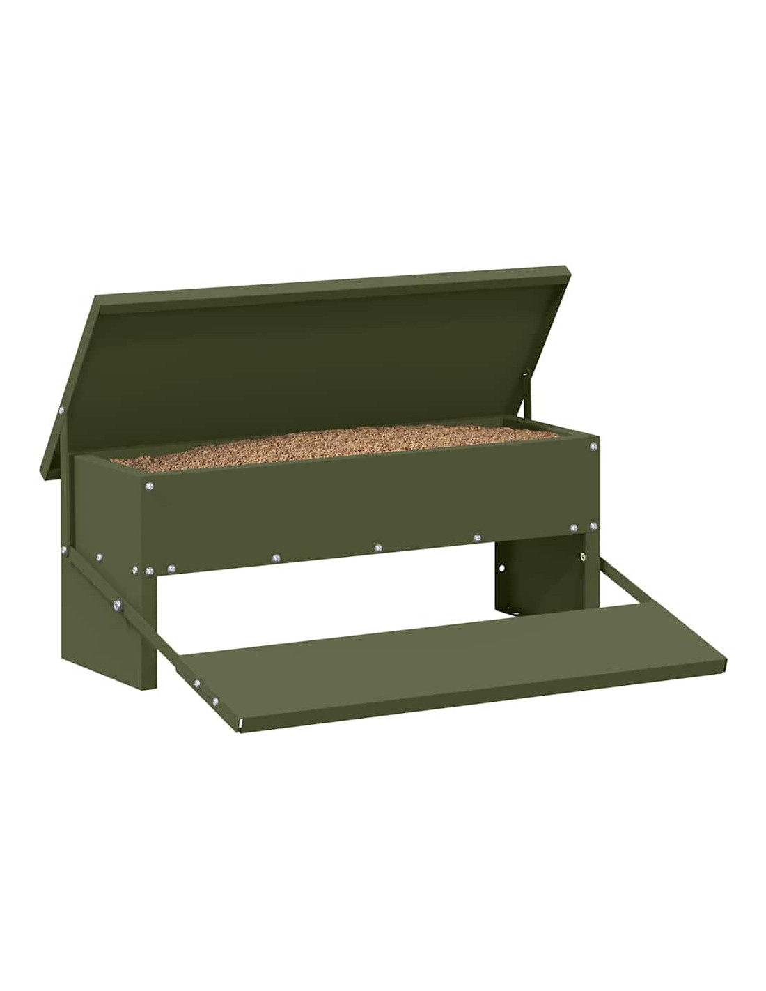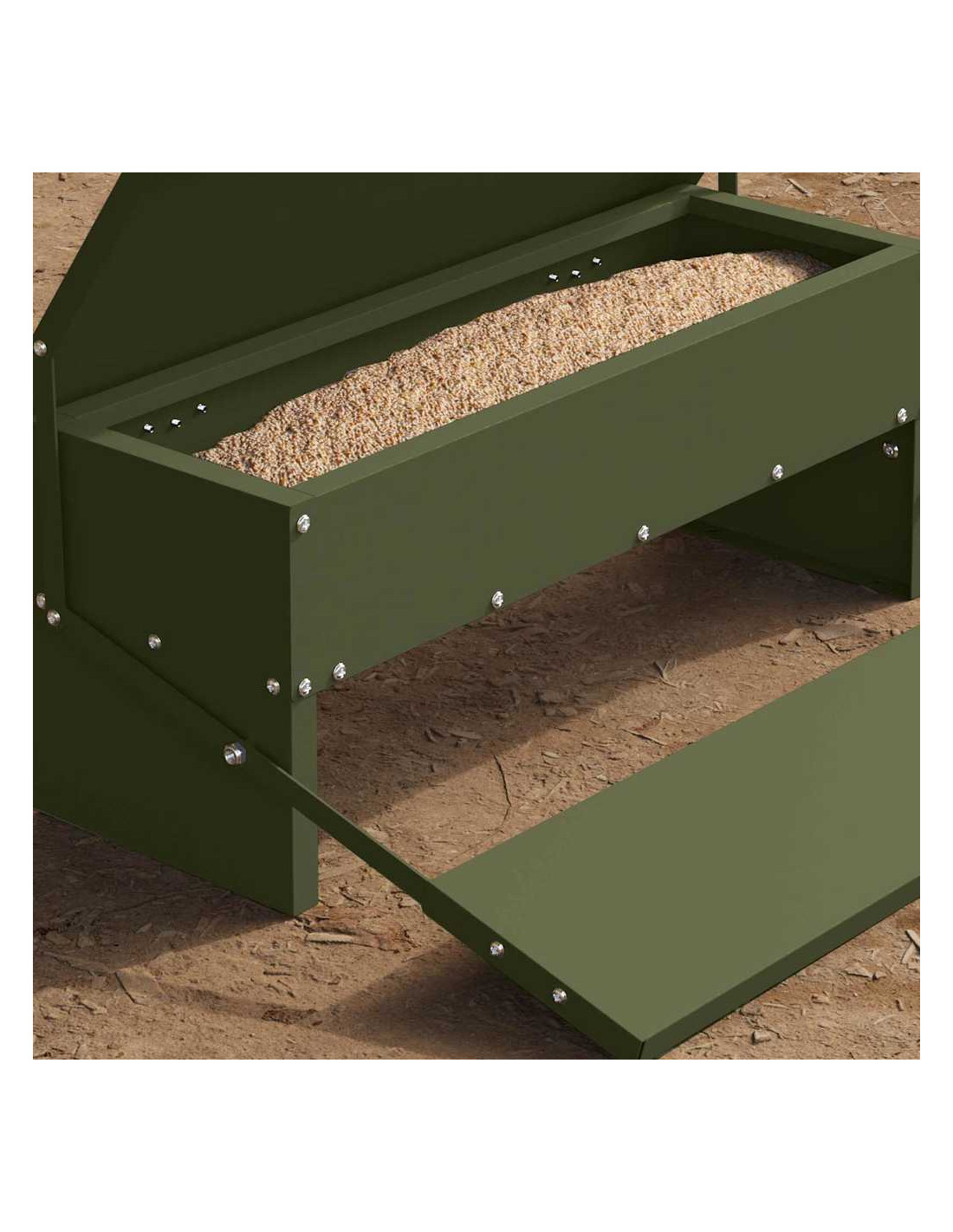 - Costruzione in Acciaio Resistente Realizzato in acciaio di alta qualità, questo feeder resiste alla pioggia e al sole, promuovendo durabilità e un'alimentazione igienica. La superficie facile da pulire aiuta a mantenerlo sempre in ordine.