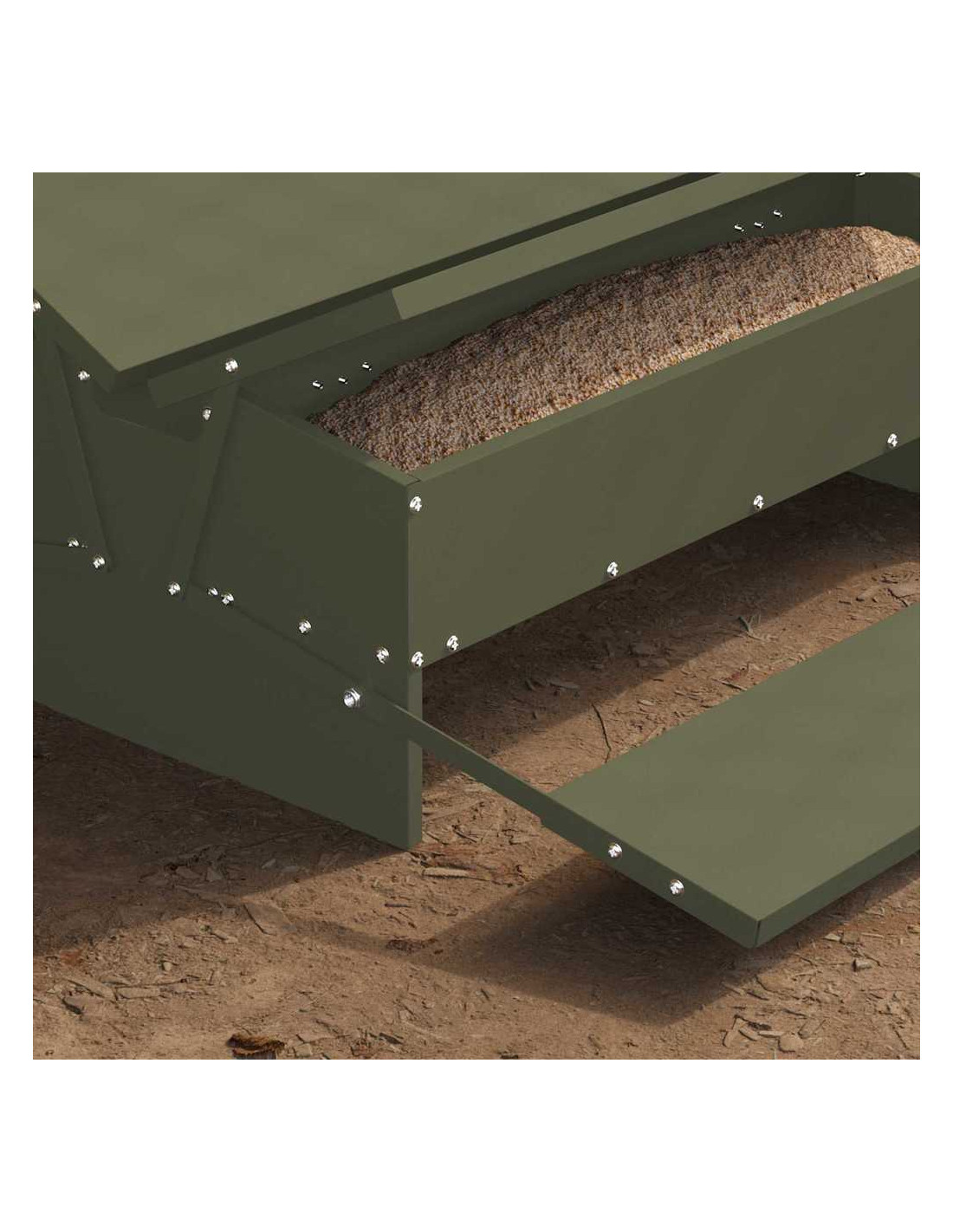 - Costruzione in Acciaio Resistente Realizzato in acciaio di alta qualità, questo feeder resiste alla pioggia e al sole, promuovendo durabilità e un'alimentazione igienica. La superficie facile da pulire aiuta a mantenerlo sempre in ordine.