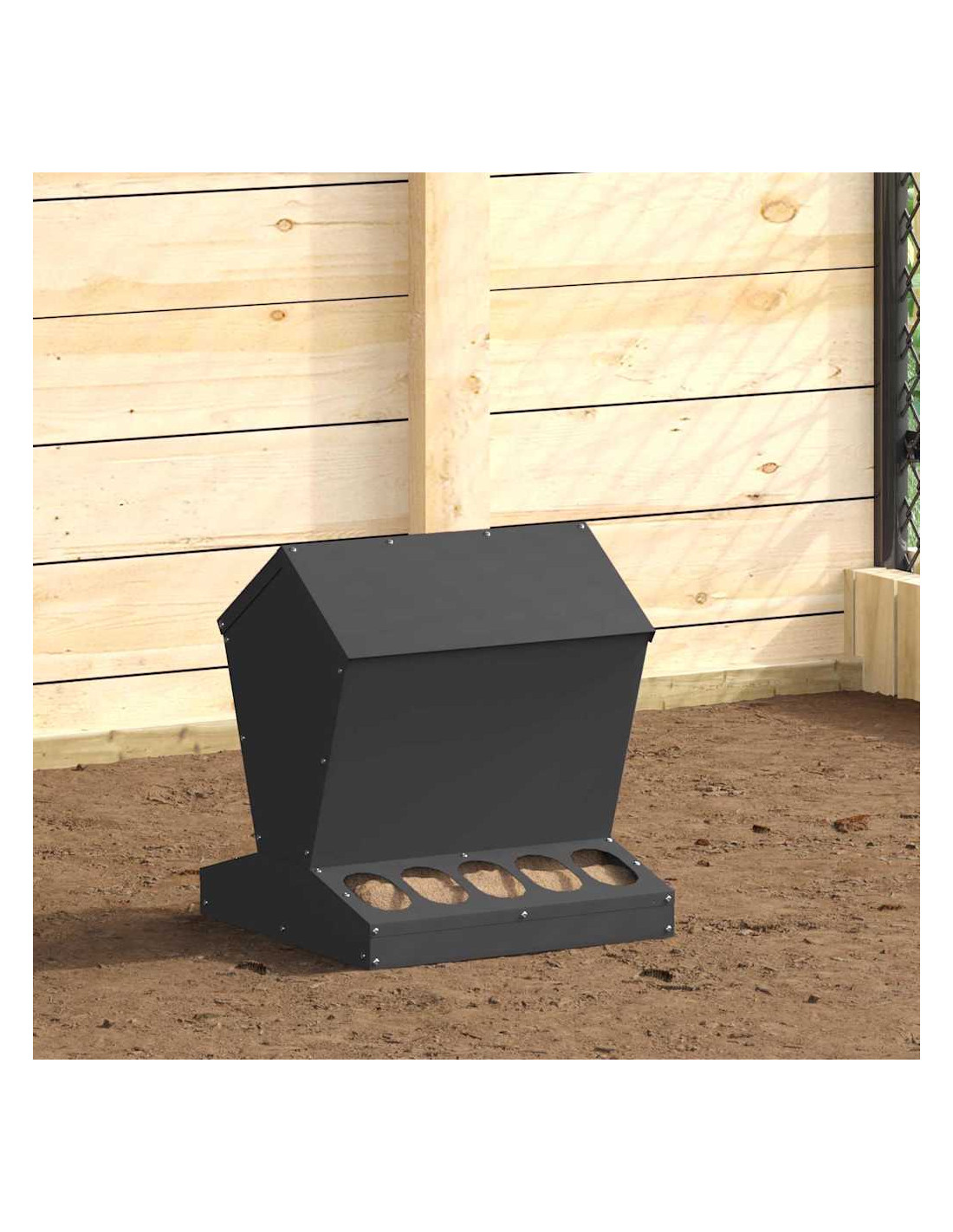 - Utilizzo efficiente dello spazio Il design compatto di questa mangiatoia si integra facilmente in giardini e terrazze, senza occupare troppo spazio. È una soluzione snella per organizzare l'alimentazione dei tuoi polli senza ingombri superflui.