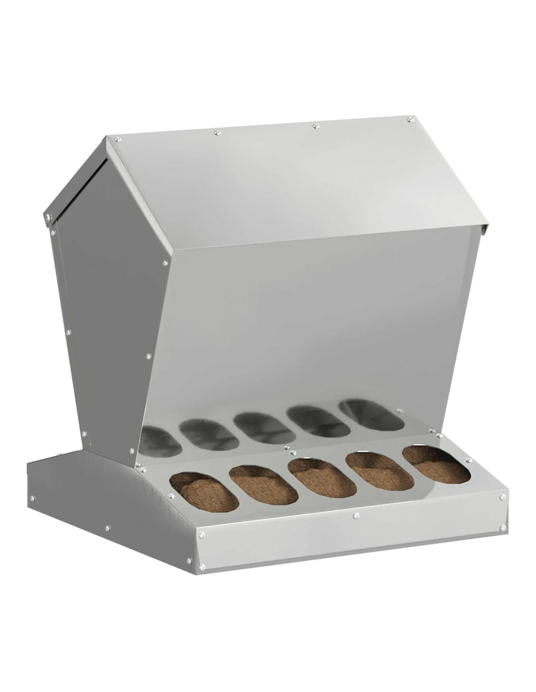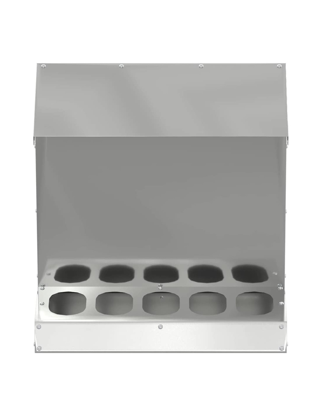 - Costruzione in acciaio resistente L'acciaio robusto di questa mangiatoia offre grande resistenza agli agenti atmosferici, garantendo una soluzione duratura per il tuo pollame. La struttura solida resiste all'uso quotidiano, così puoi stare tranquillo che i tuoi animali siano sempre ben nutriti e felici.