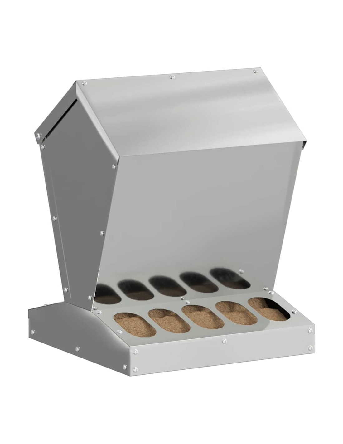 - Costruzione in acciaio resistente L'acciaio robusto di questa mangiatoia offre grande resistenza agli agenti atmosferici, garantendo una soluzione duratura per il tuo pollame. La struttura solida resiste all'uso quotidiano, così puoi stare tranquillo che i tuoi animali siano sempre ben nutriti e felici.